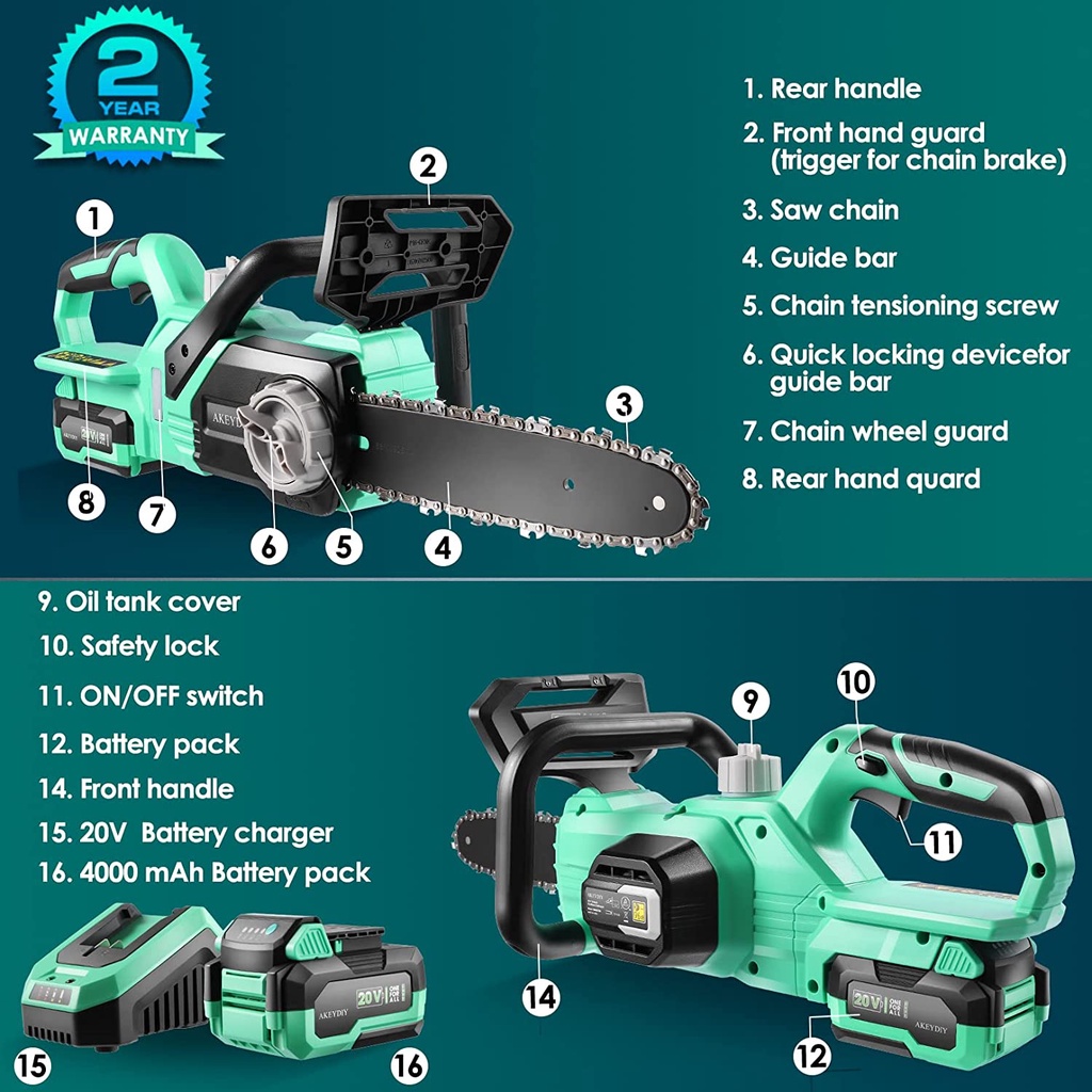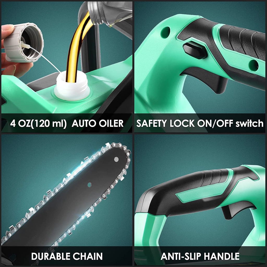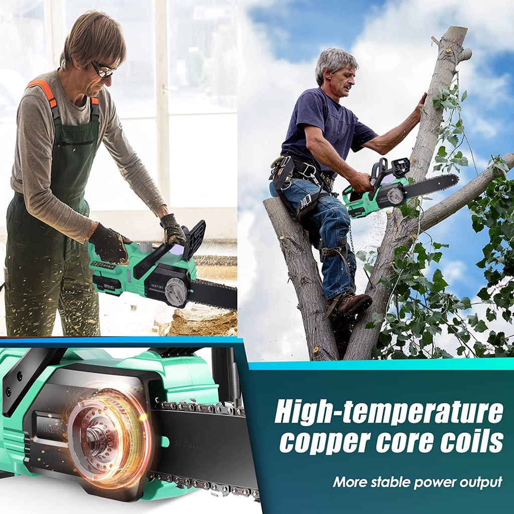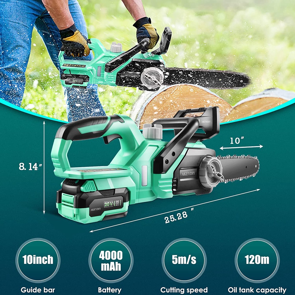 Upgrade Cordless Electric Chainsaw 10 inch Professional Battery Powered Chainsaw 4000mAh Fast Charger Chain Saw Kit