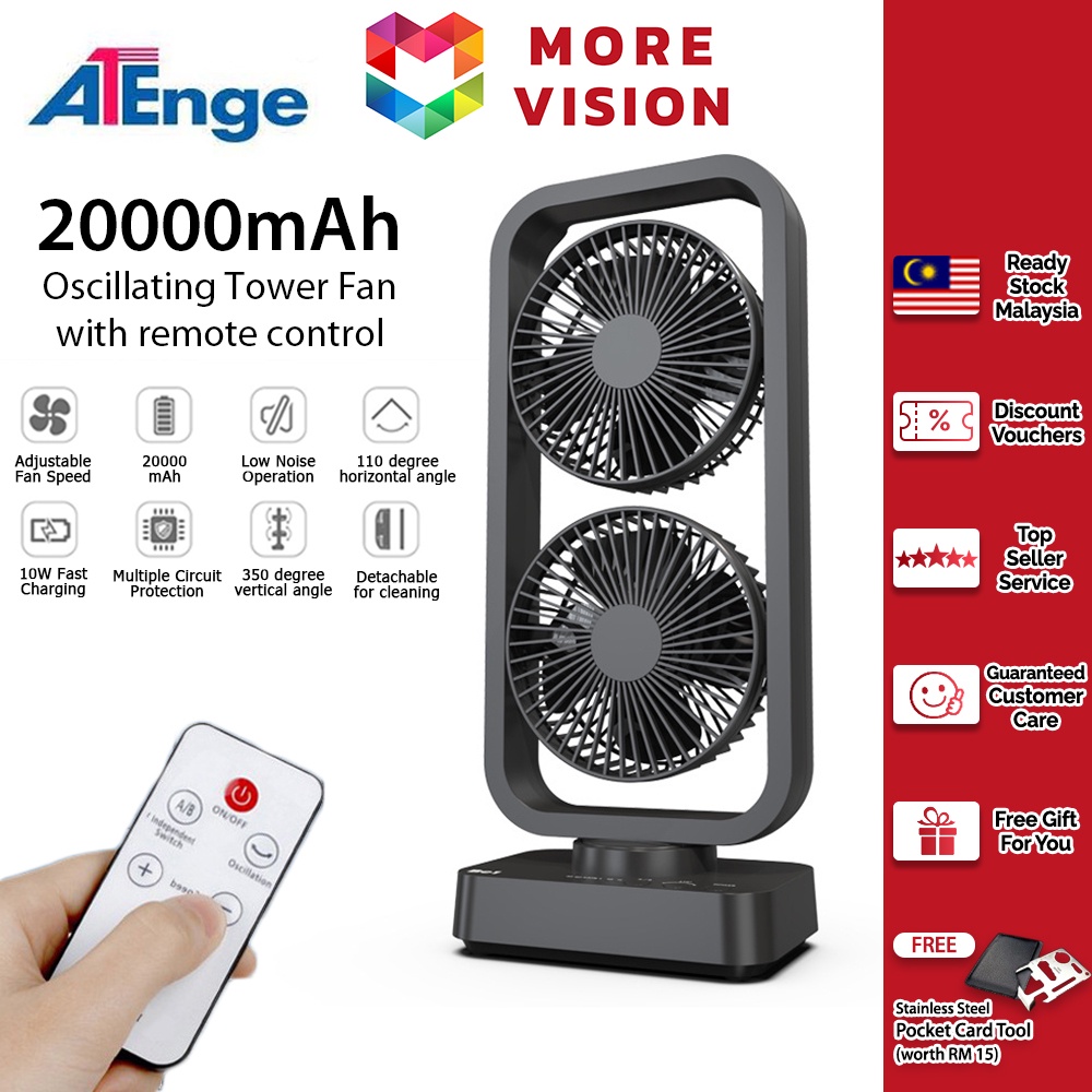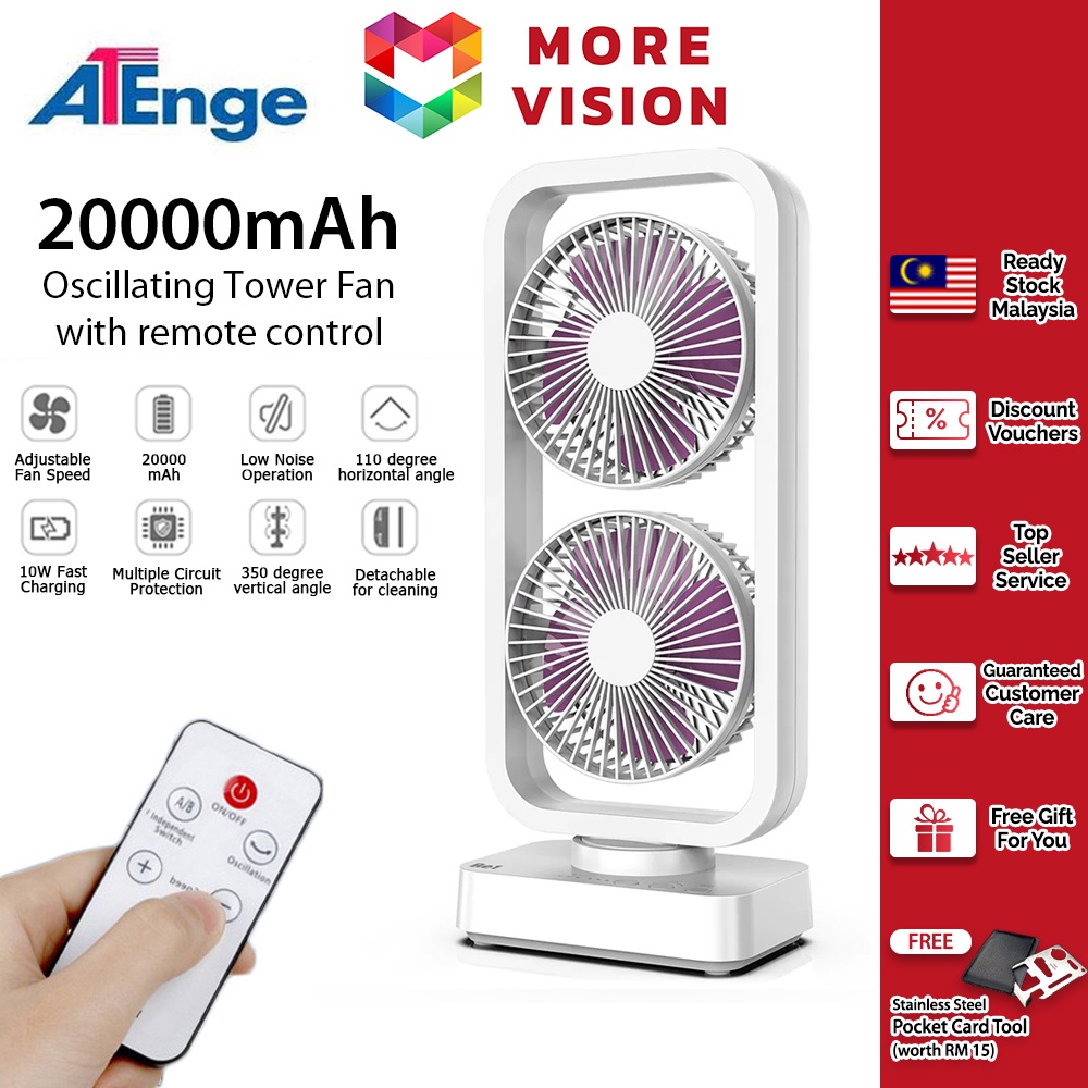 Upgraded 10000mAh Oscillating Tower Fan Double Fans Remote Control LED Portable Desk Rechargeable USB Table Kipas Meja
