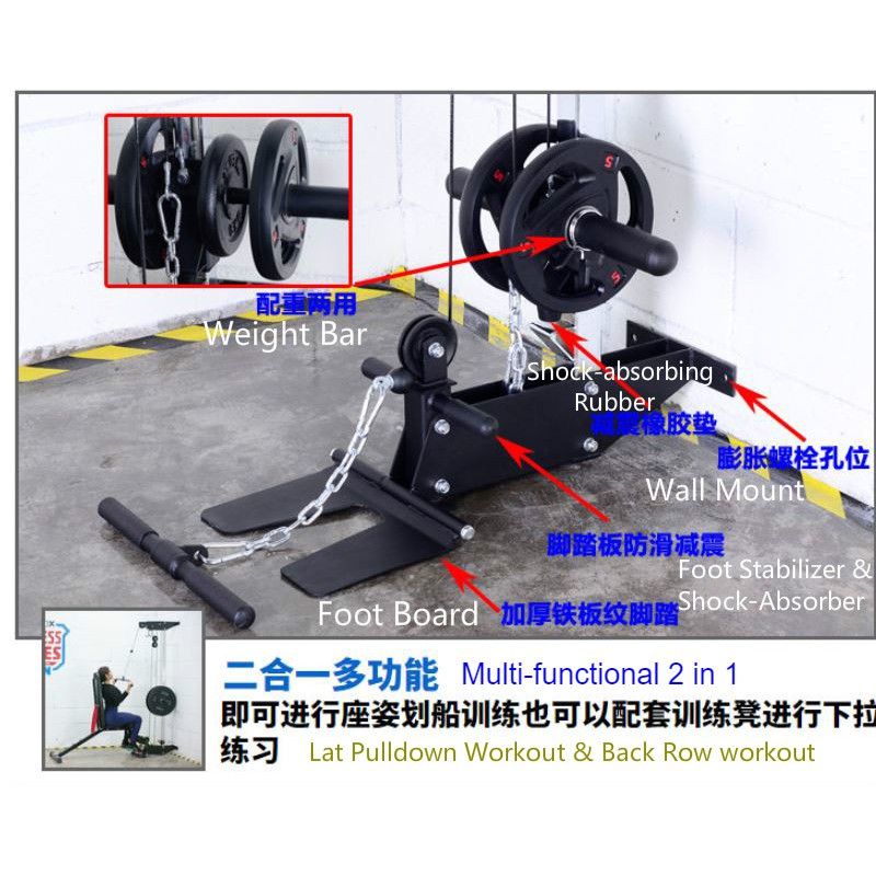 Upgraded Wall Mounted Lat Pulldown Machine Cable Crossover Station Seated Row Gym Pulley Rotatable