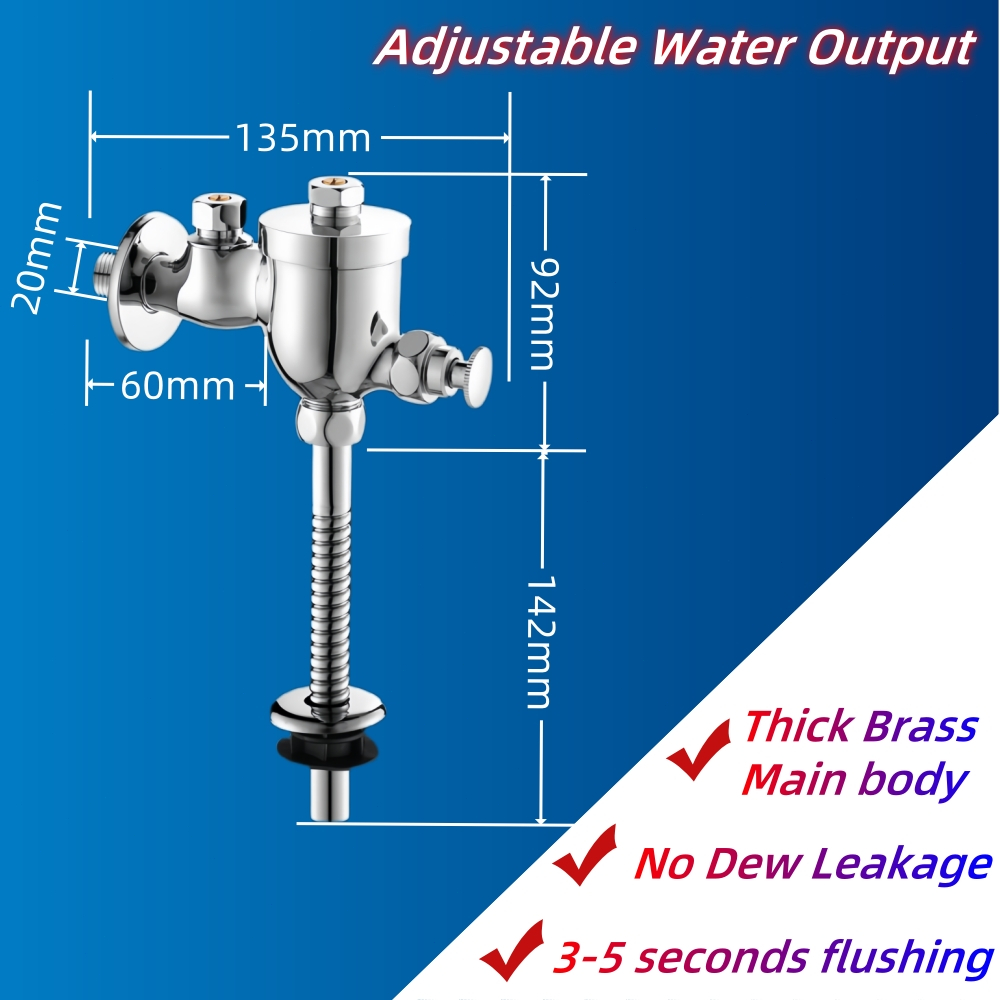 Urinal Flush Valve Toilet Bowl Auto Self Close Manual Button Type Exposed Valve 100% Brass Bathroom