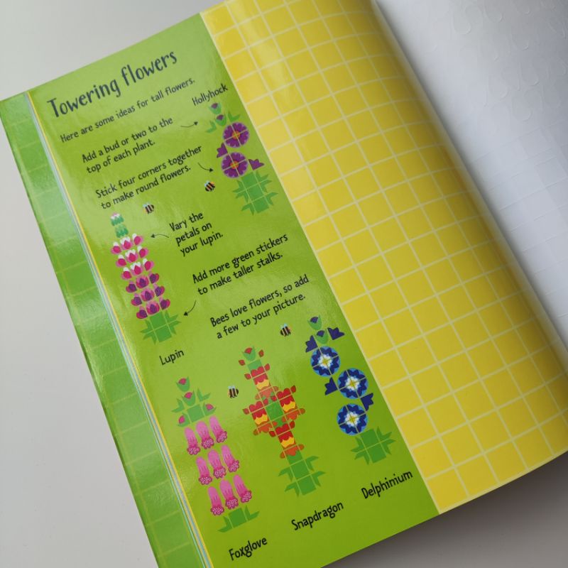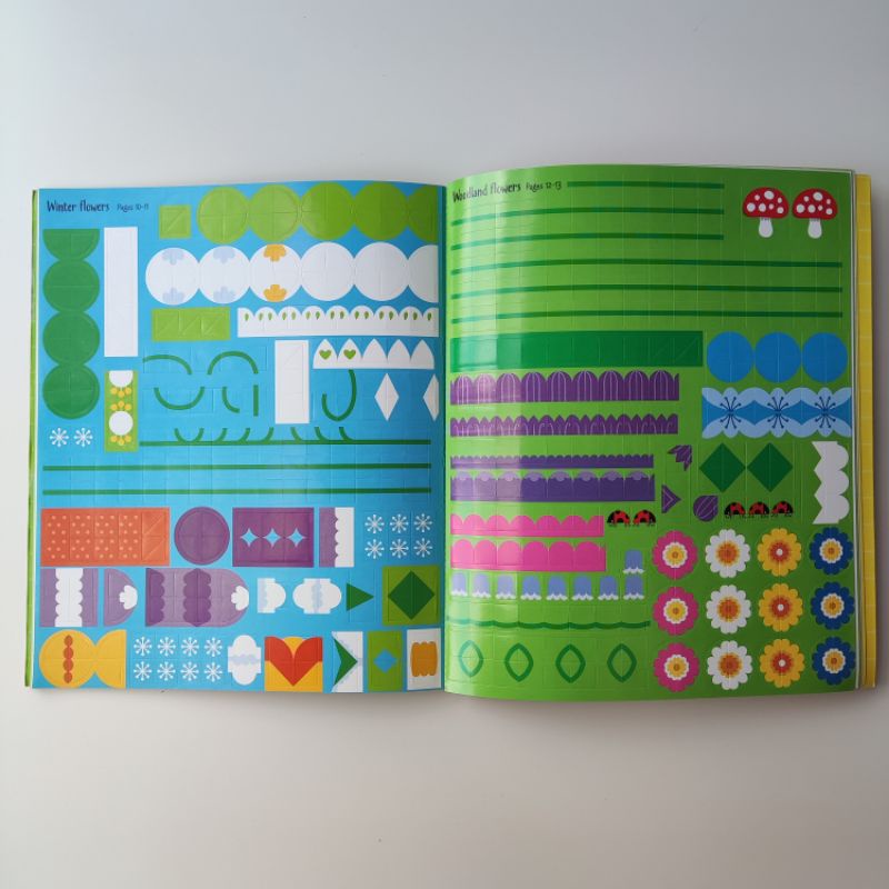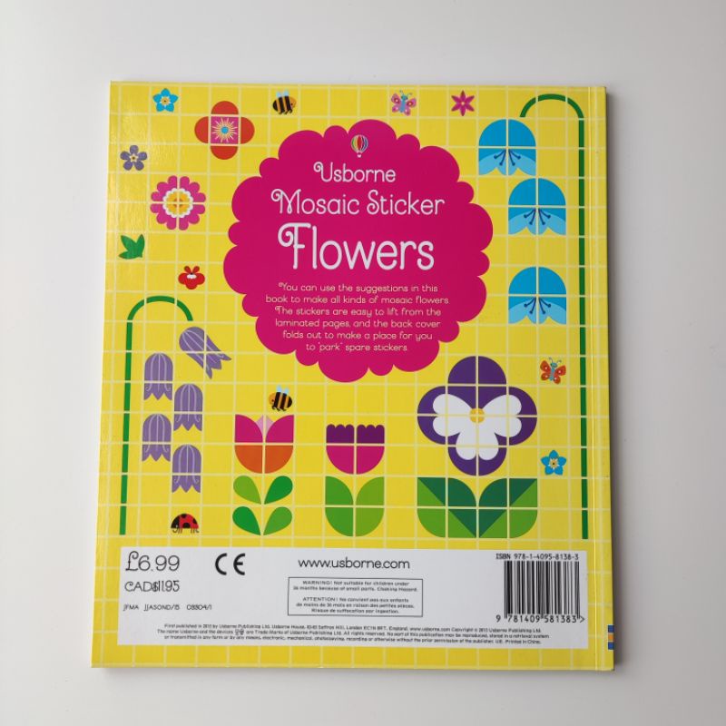 Usborne Mosaic Reusable Sticker Book Flower s Children Kids Fun Stick Buku Activity Pixel