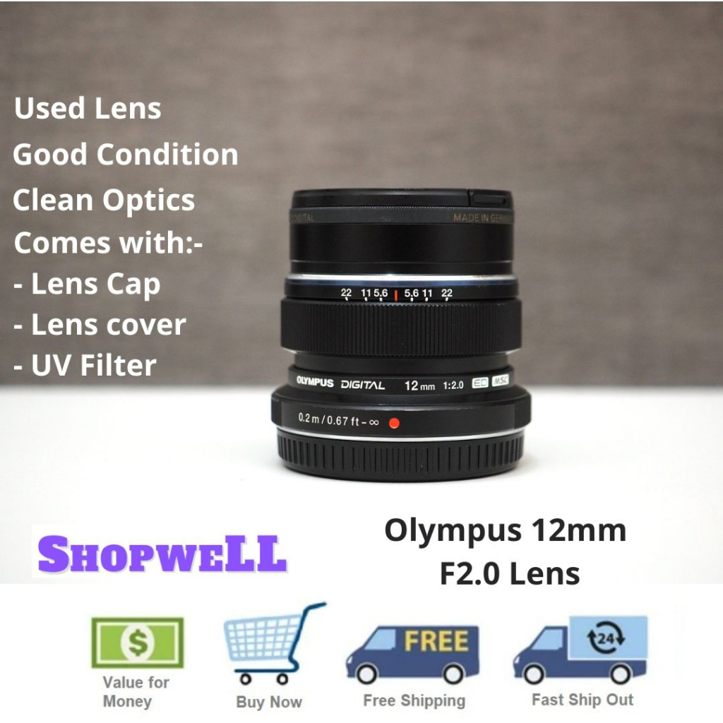 Used Olympus 12mm f2.0 M.Zuiko Black Digital ED Wide Angle 12mm Lens Micro Four Thirds