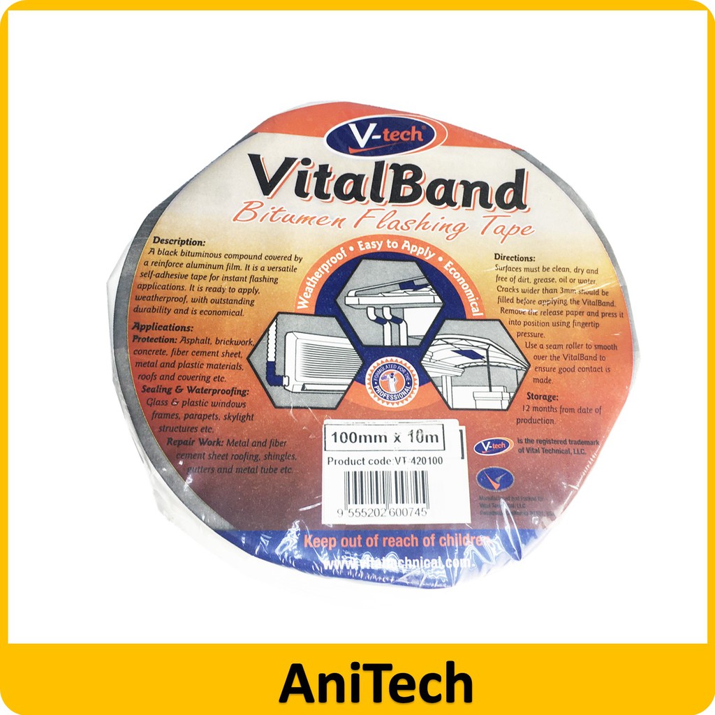V-TECH ALL SIZE BRAND VITAL BAND BITUMIN FLASHING TAPE ( VT-420100 VT-42050 VT-42075 )