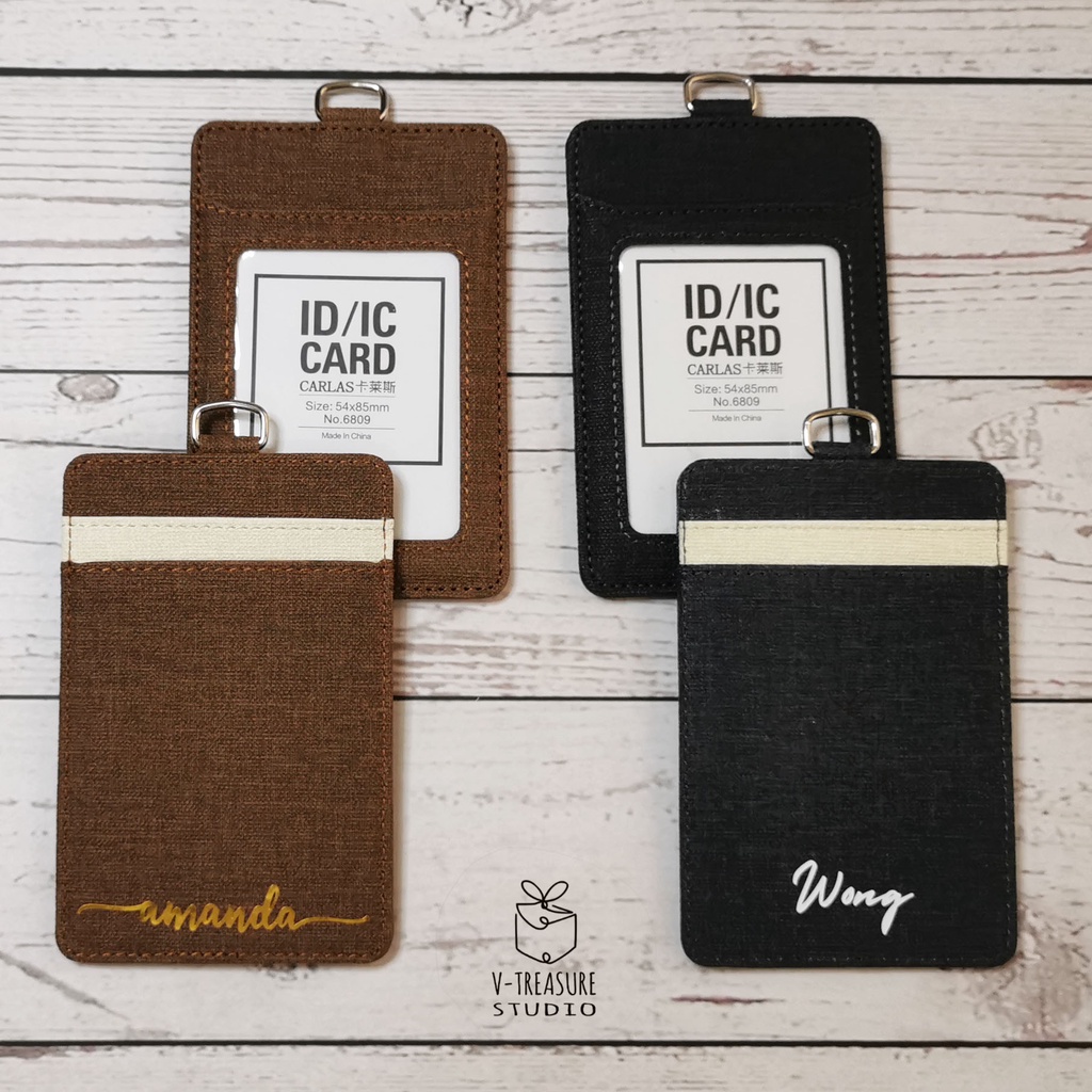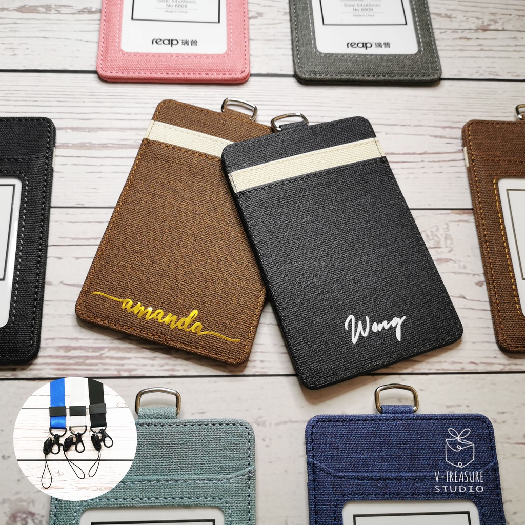 V-TREASURE Personalized PU Leather Employee ID Card Holder with Lanyard | Office Name Card Holder | Custom Name Gift