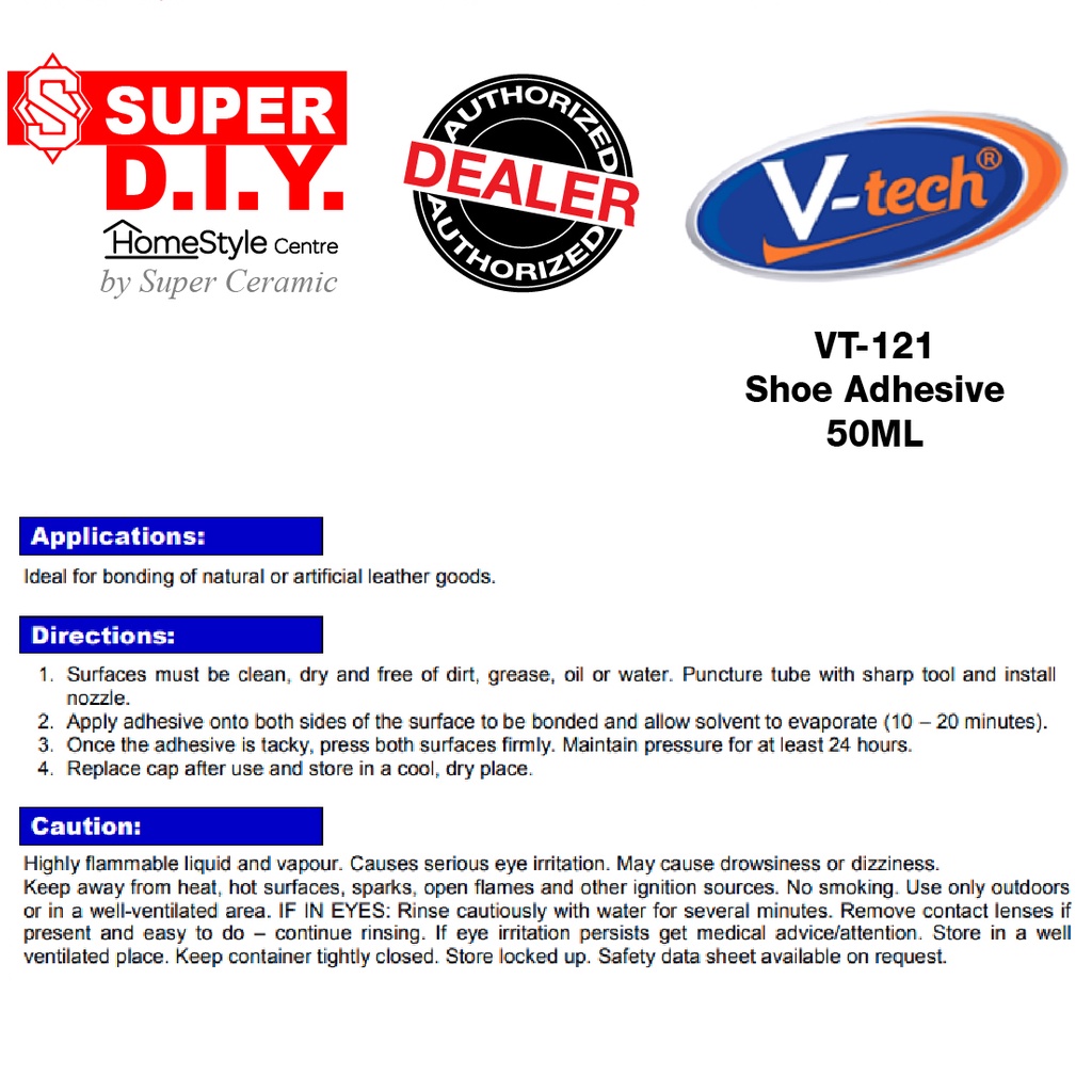 V-tech VT-121 Shoe Adhesive Sealant Toluene Free Formulation (50ml)