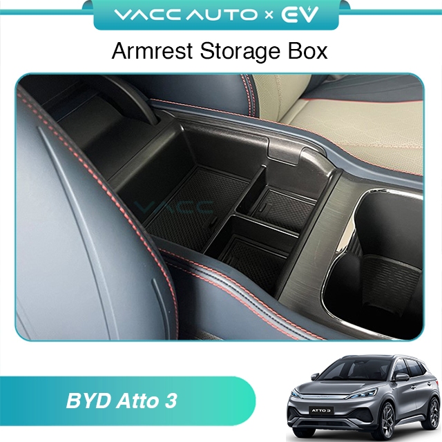VACC AUTO Armrest Storage Box Car Center Console Coin Box Oraganizer Tray For BYD Atto 3 2023-Present Car Accessories