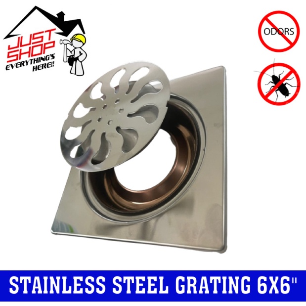 VAGO Brand 6''x6'' Stainless Steel Floor Trap Filter With Drain / Floor Drain / Floor Grating / Penutup Lubang Toilet