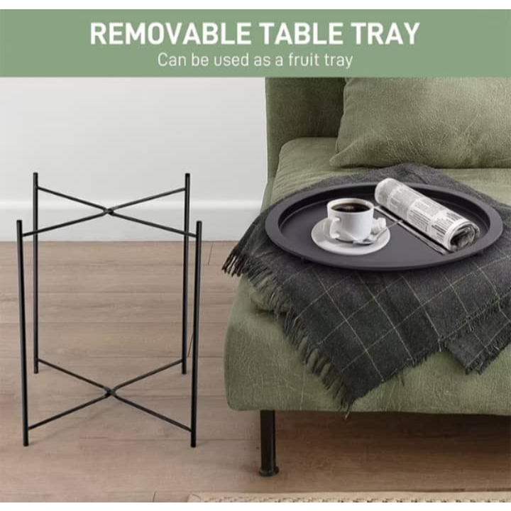 VALUE Round Table Metal Tray Table Bedside Table, Indoor Modern Sofa Side Table, Outdoor Snack Table