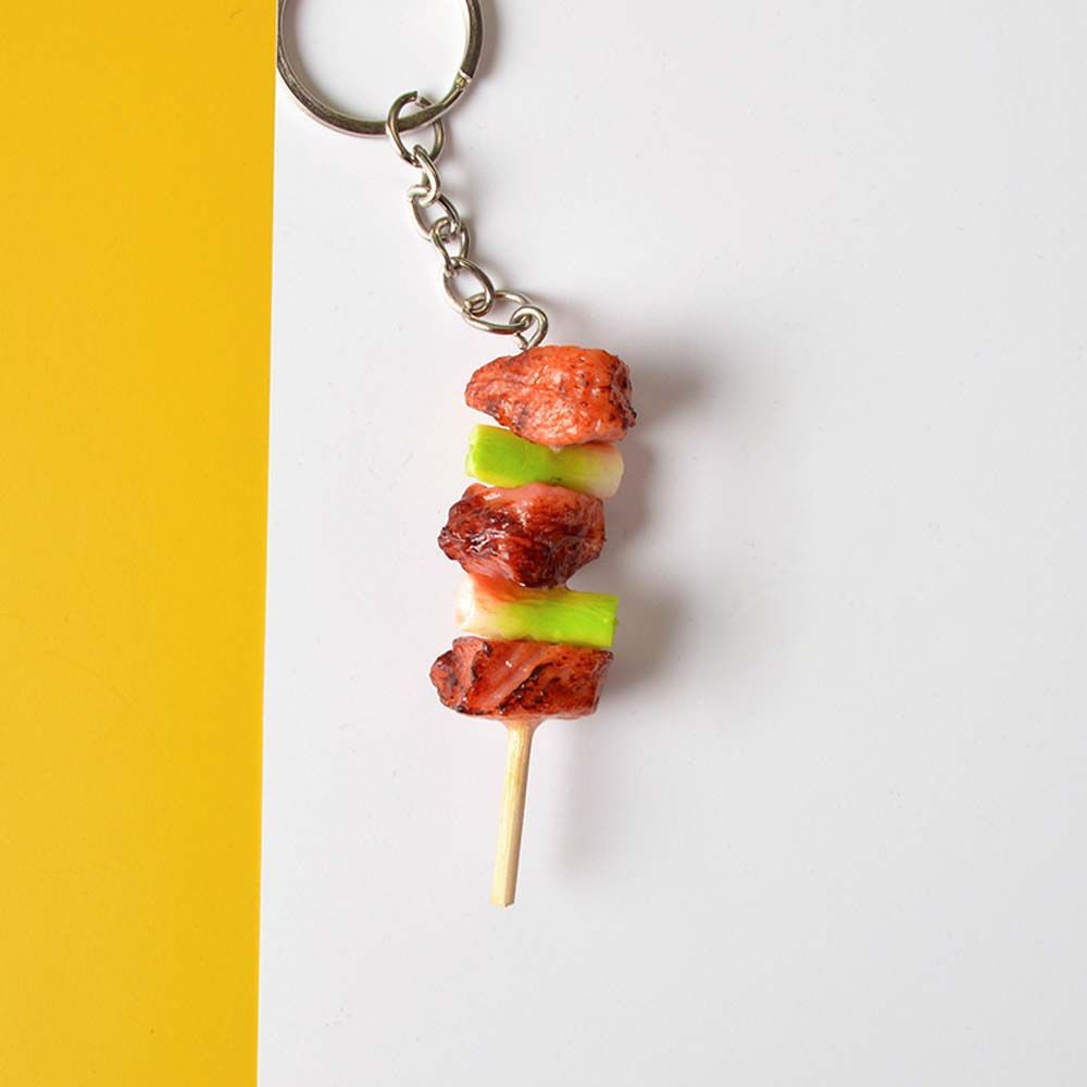 NAESV Funny Fake Food Key Ring Cute Korean Style Bag Pendant Simulation BBQ Keychains Skewer Squid Ornaments PVC Must Gluten Oden Door Car Key Women Fashion Jewelry