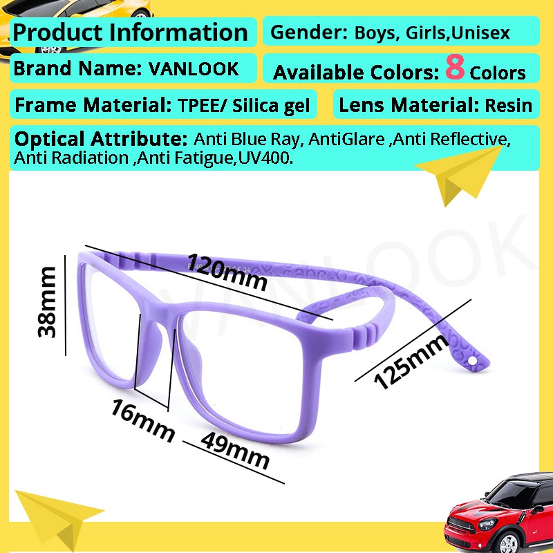 VANLOOK Blue Light Filter Glasses For Kids Anti Radiation Computer Cermin Mata Sport UV Gamer Screen Eyeglasses Age 5-12
