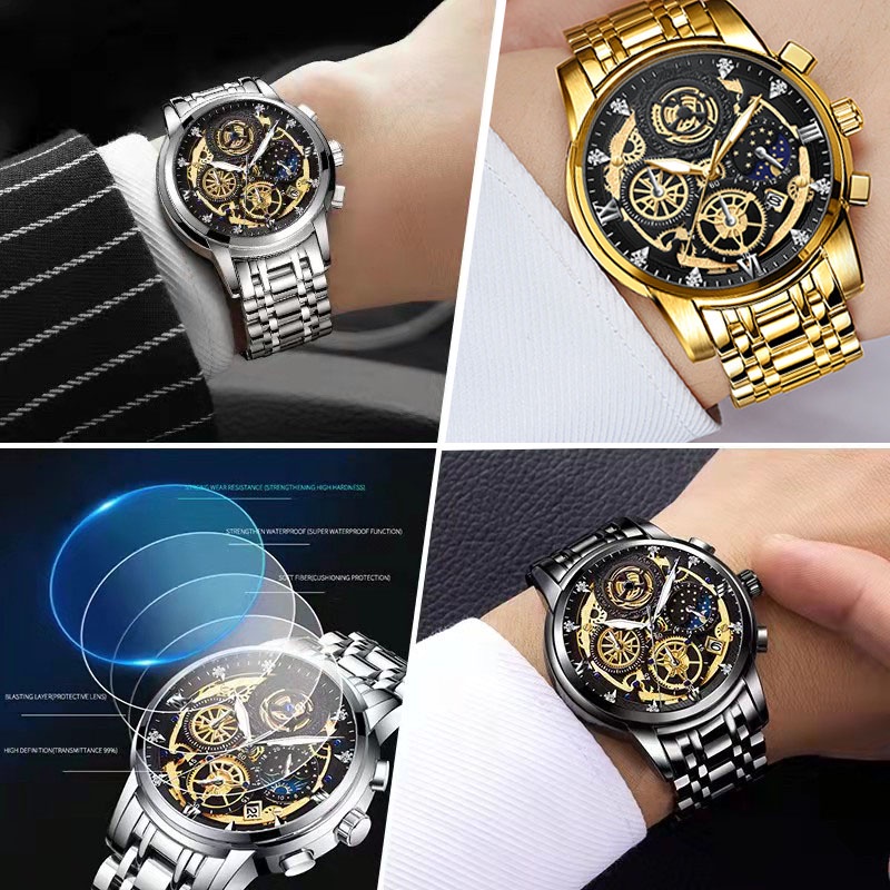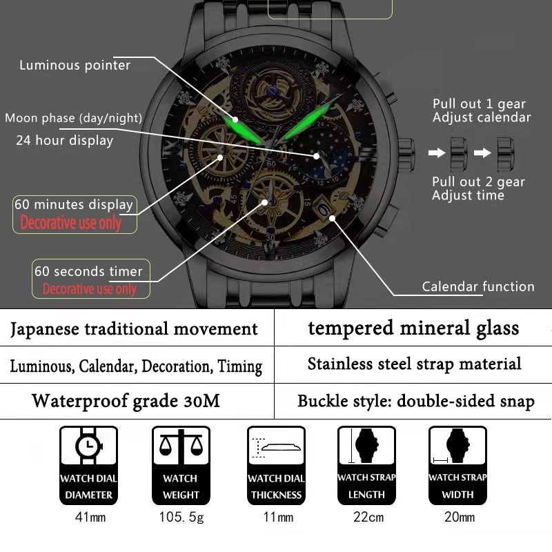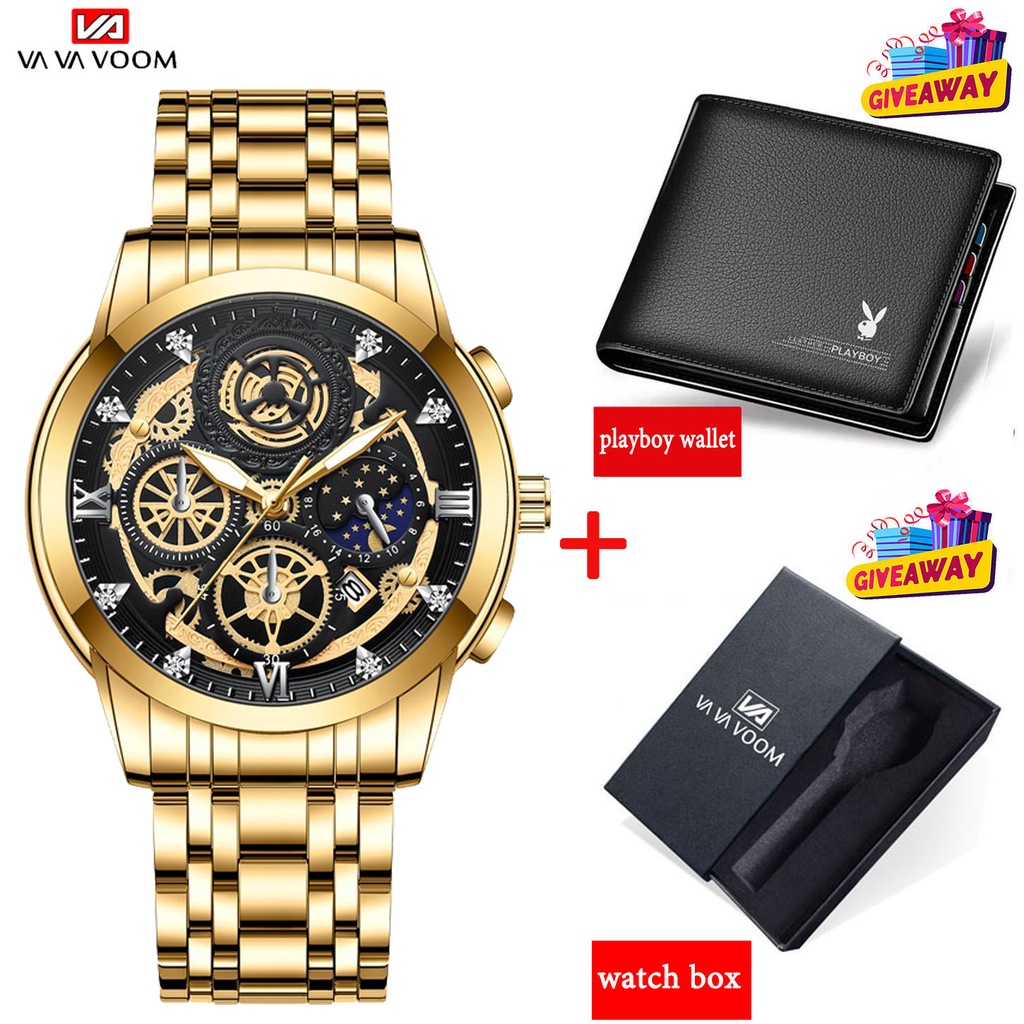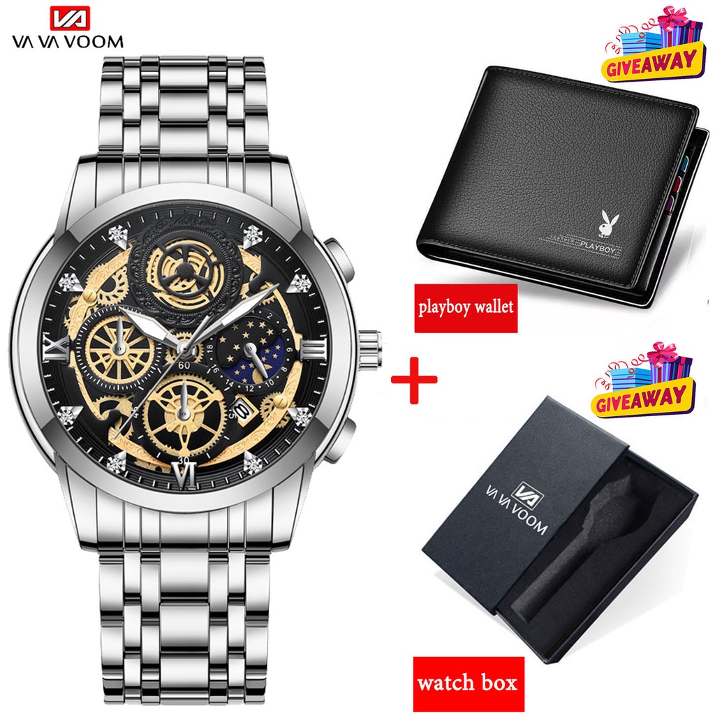 VAVA VOOM watch for men Skeleton Non-Mechanical Business Calendar Watch Fashion Quartz Watch Waterproof