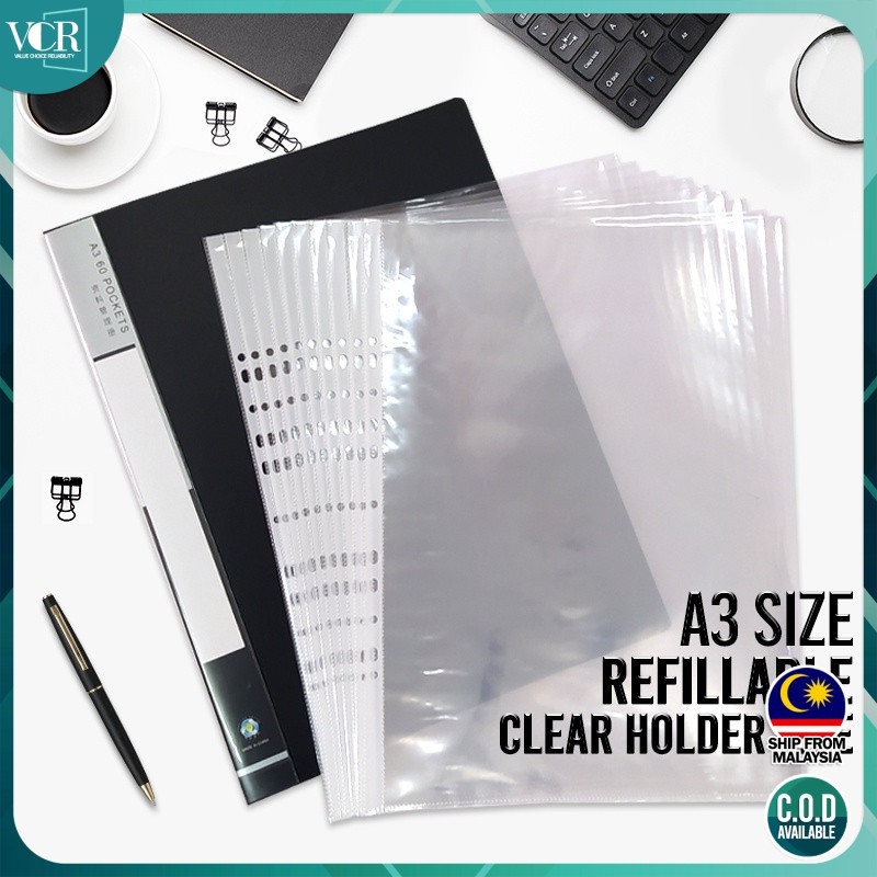 VC Art A3 Clear Holder File Refillable Strong Hold High Thickness Document Sheet Protector Display Book File Folder