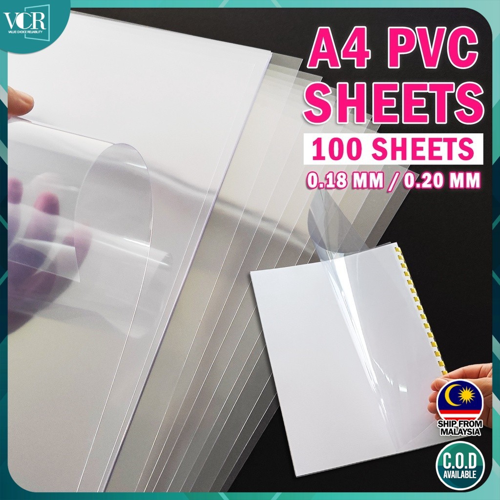 VC Art Plastic Sheet Cover 100s size A4 Rigid Sheet Multipurpose Transparent Binding PVC Thickness 0.18MM / 0.2MM Office
