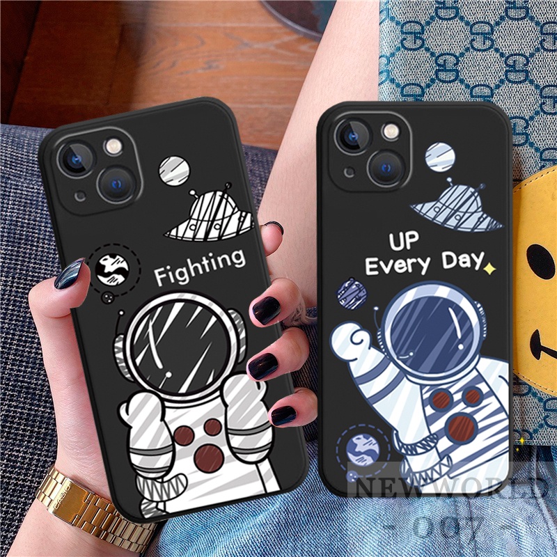 VC Casing Xiaomi Redmi 10 9 9A 9C 9T Redmi Note 10 10s 10 Pro Cute Astronaut Back Straight edge Phone Case Cover