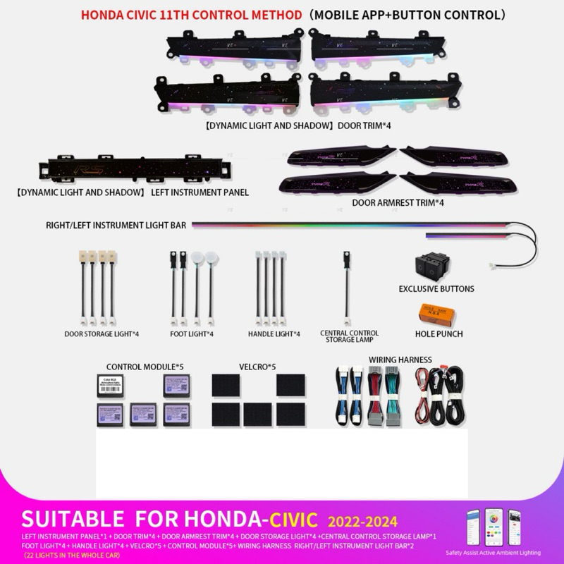 VE Honda civic fe 2022-2025 dynamic car oem ambient light ambient light atmosphere rgb light