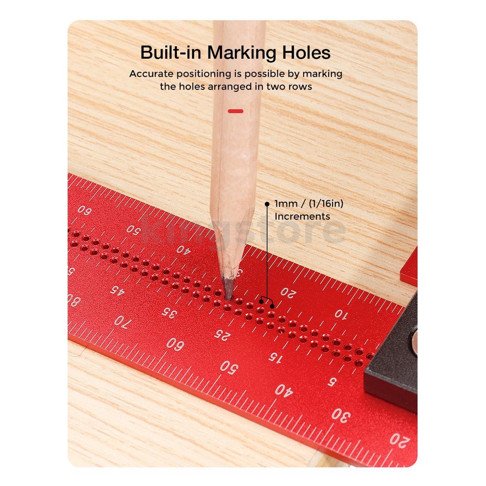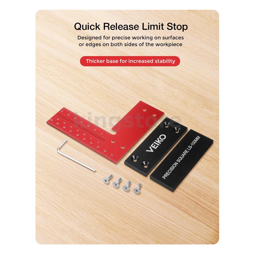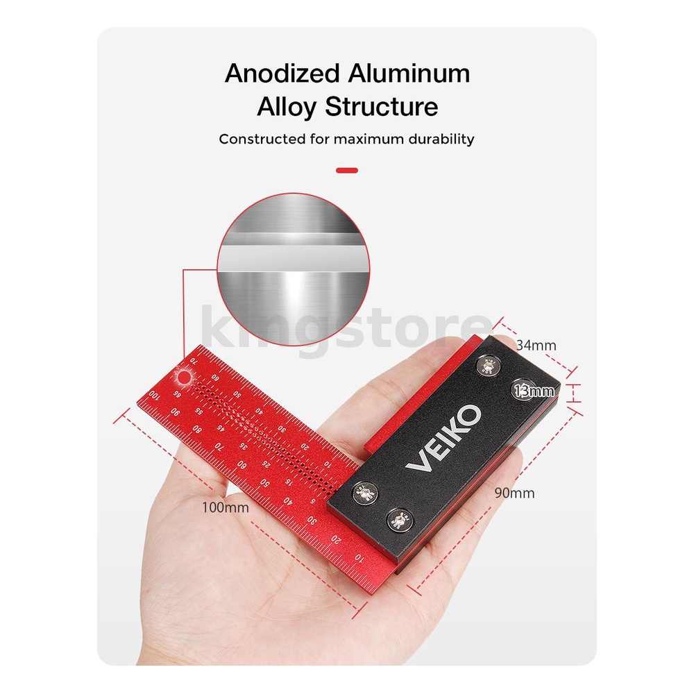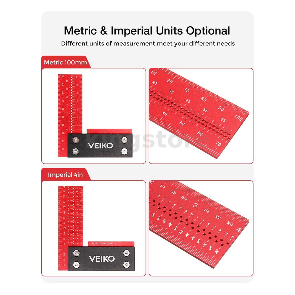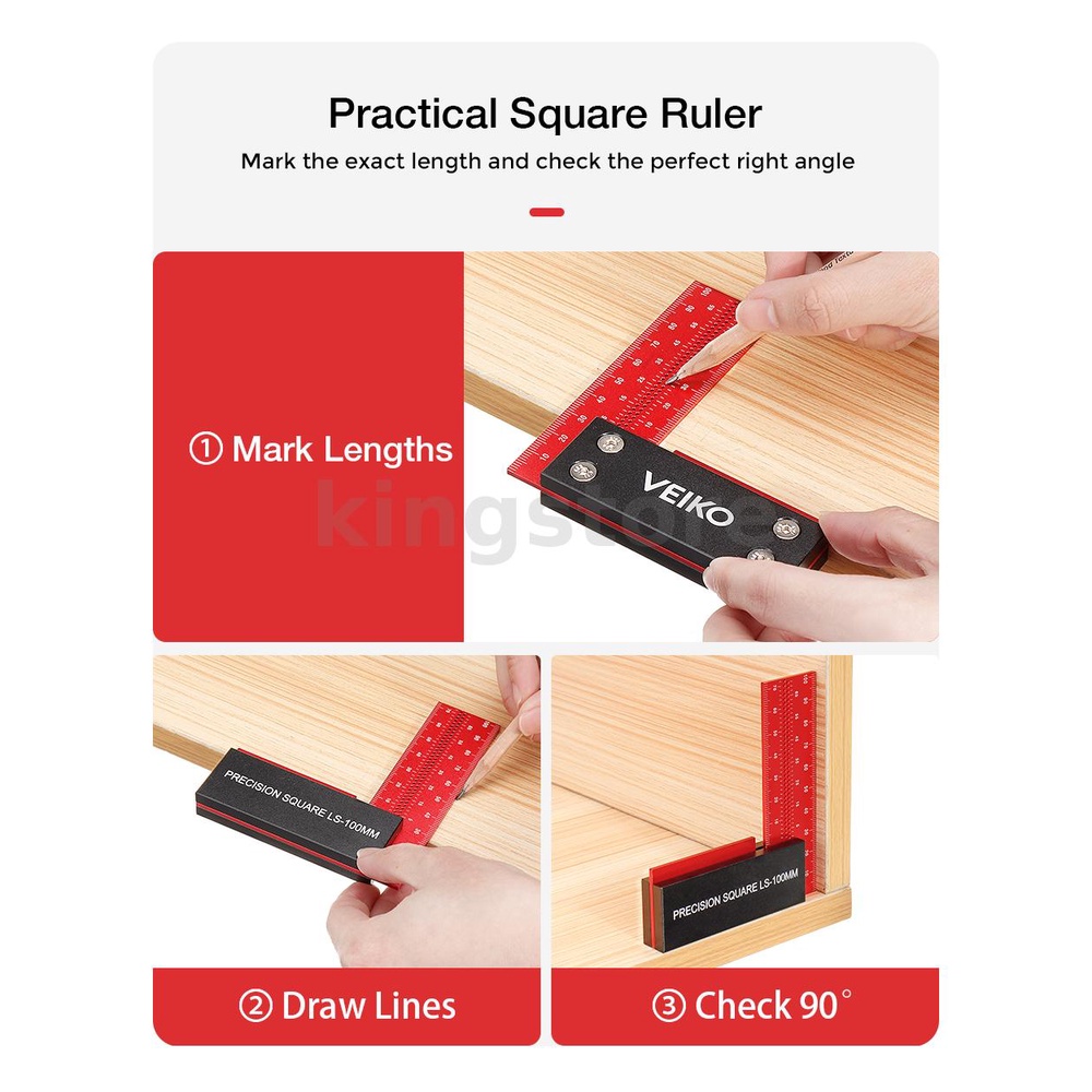 VEIKO 100mm/4Inch Aluminum Alloy Woodworking Ruler Precision Square Guaranteed T Speed Measurements Ruler for Measuring