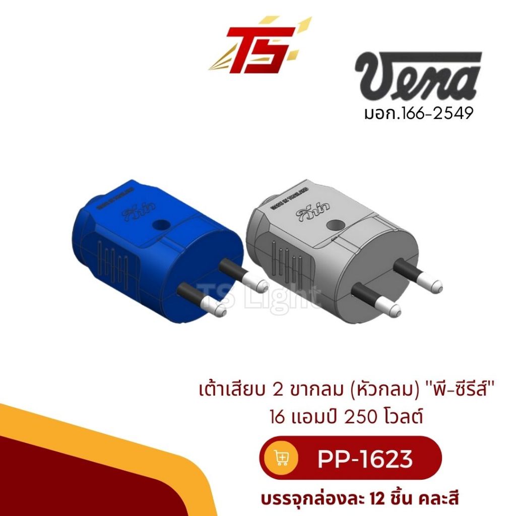 VENA PP1623 2-Pin Round Socket (Round Head) "P-Series" 16 Amps 250 Volts Packed In Boxes Of 12 Pieces
