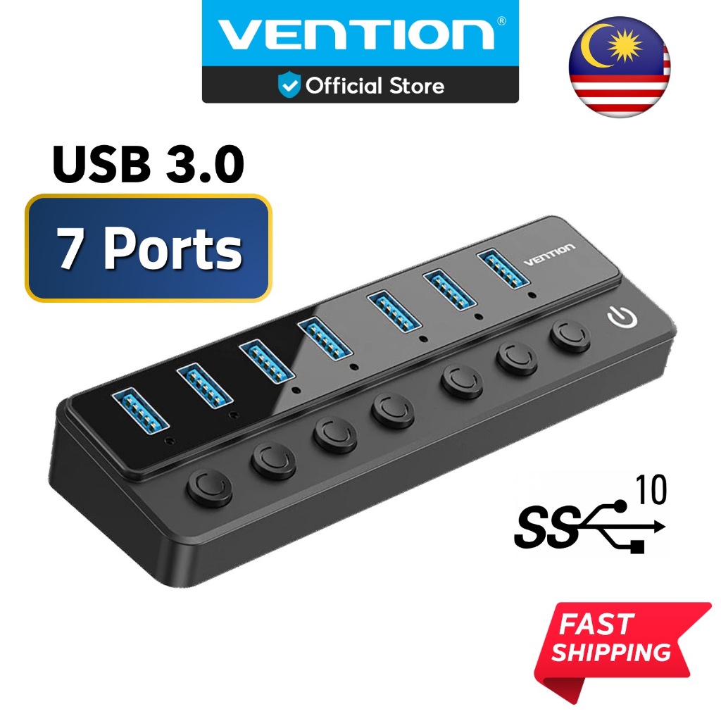 VENTION 7 Port USB Hub USB 3.0 5Gbps High Power with Adapter for Multi Device Streamer Fast Charge