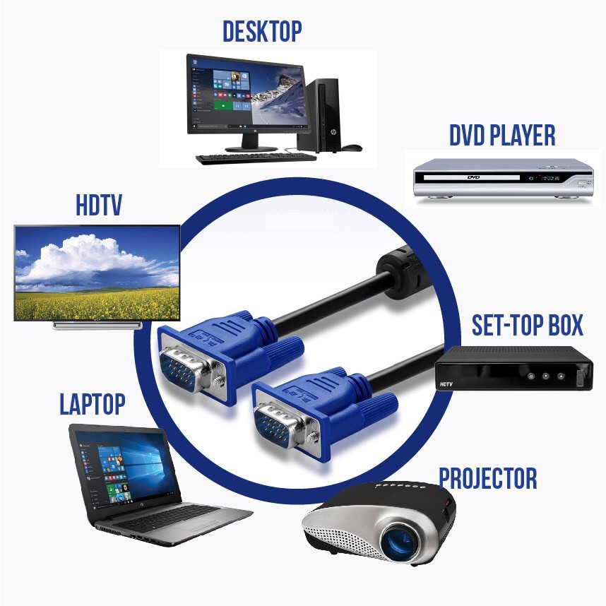 VGA 1.5M HIGH QUALITY / VGA MALE TO VGA MALE CABLE 15PIN VGA CABLE / RGB DISPALY CABLE 15PIN MALE TO MALE 3C+4