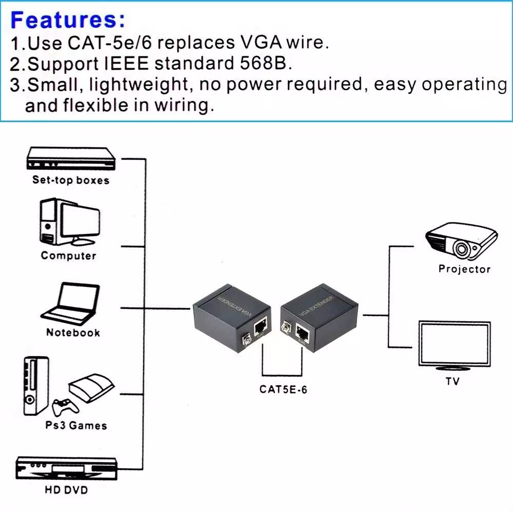 VGA Signal Extender – 60 Meters over Single Ethernet Cable