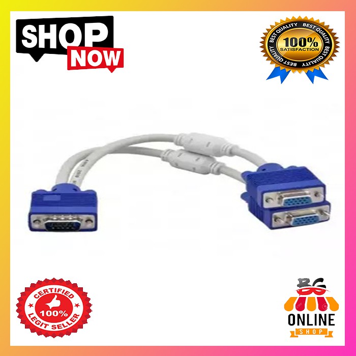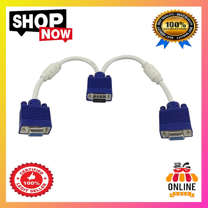 VGA Splitter Cable 1 Computer to Dual 2 Monitor Adapter Y Splitter VGA Cable Male to Female for Comp