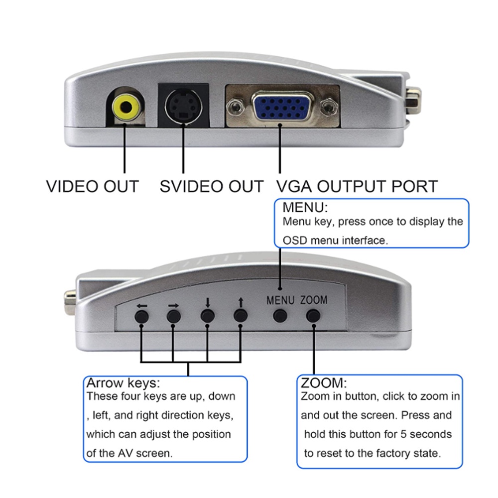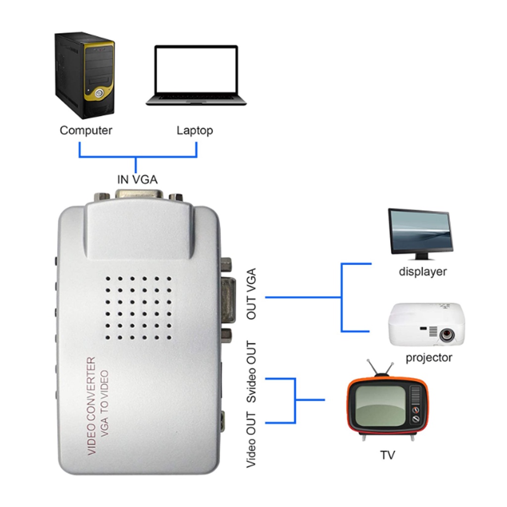 VGA to AV RCA Adapter Composite VGA to Video S-Video Converter for HDTV Monitors Laptop Desktop PC