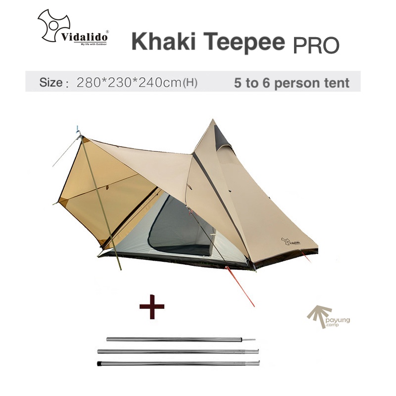 VIDALIDO Indian Style Pyramid Tent MS Teepee MX Pro Waterproof Double Layer Family Tent Teepee Tipi Outdoor Camping Tent