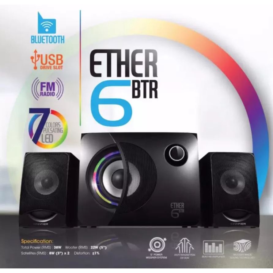 VINNFIER Ether 6BTR 2.1 Speaker with Built in Bluetooth, FM and USB