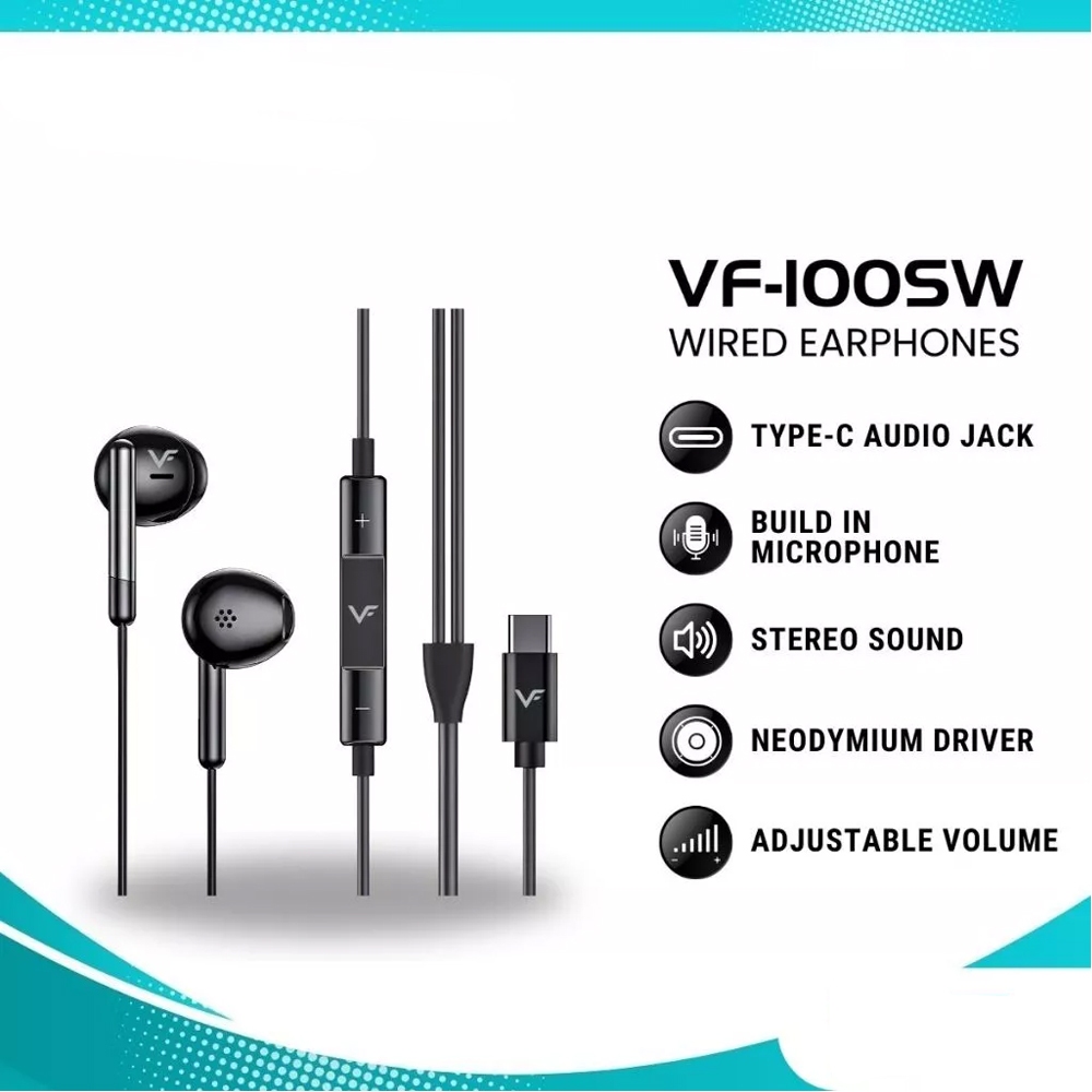 VINNFIER VF-100SW TYPE-C WIRED EARPHONES - BLACK / WHITE