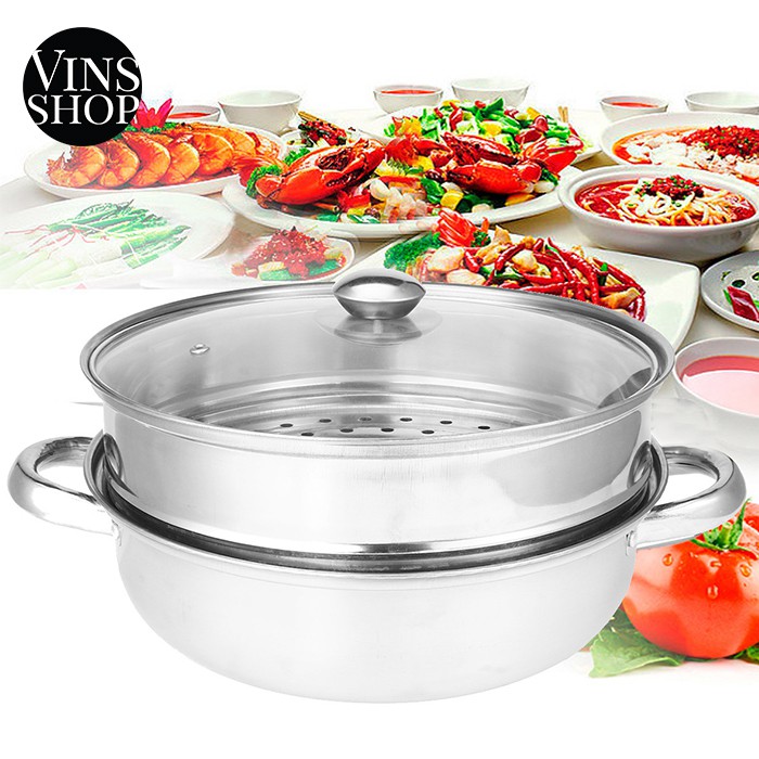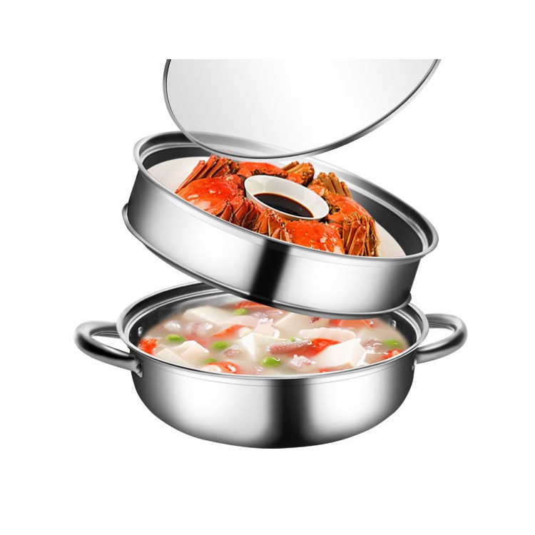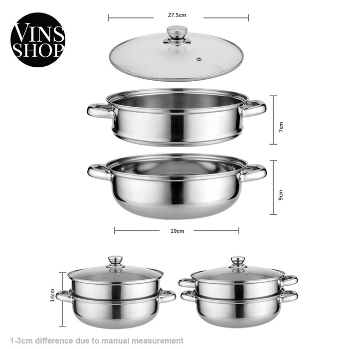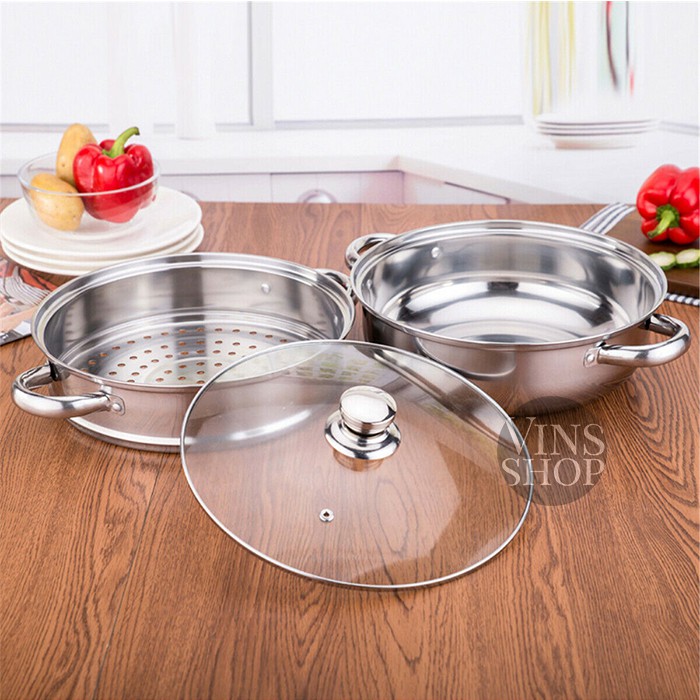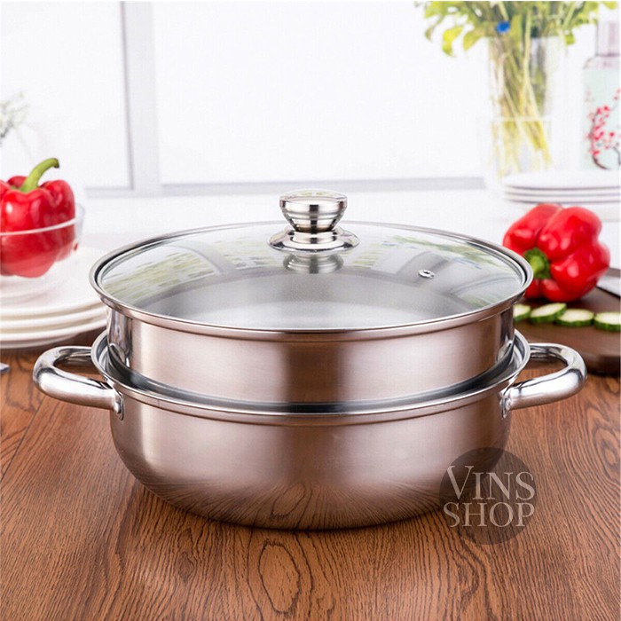VINS 2 Tier Large Steamer Pot Set Double Layer Stainless Steel Steamboat Hotpot Steam Boil Cooker Pengukus Kuari Sup