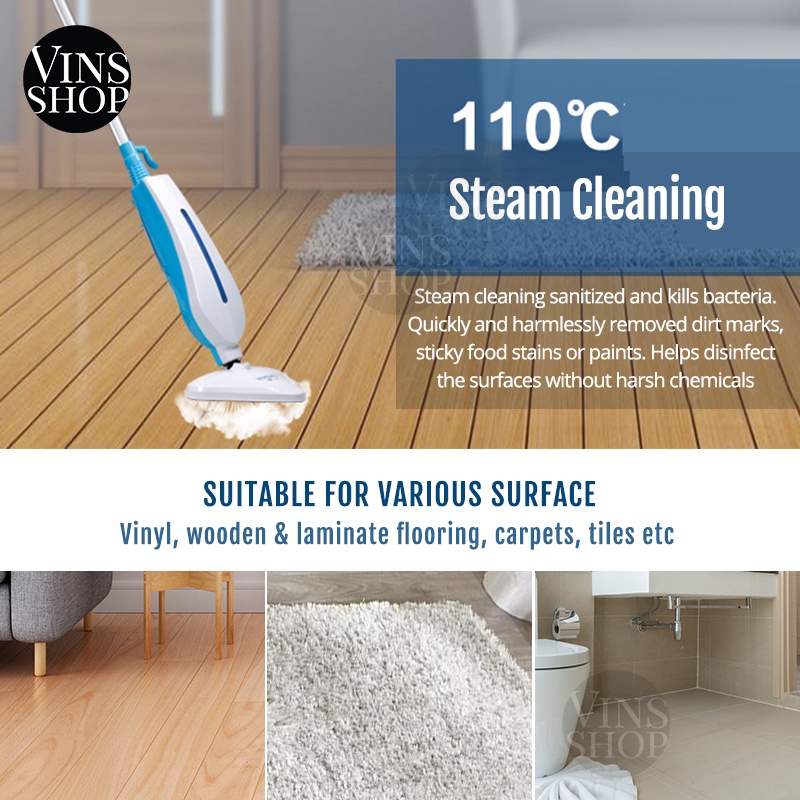 VINS Triangle Steam Mop Floor Carpet Mite Removal Cleaner High Temperature Steam Sterilization Disinfect Cleaning