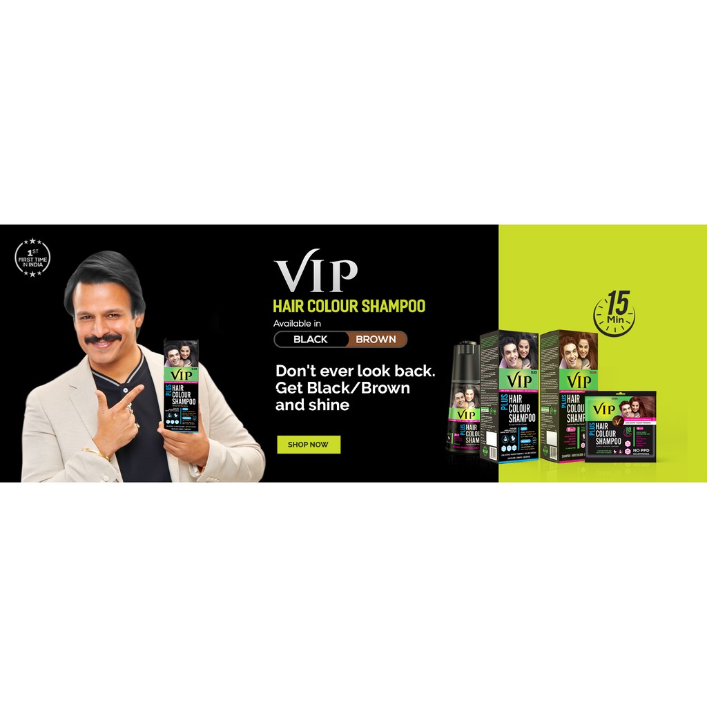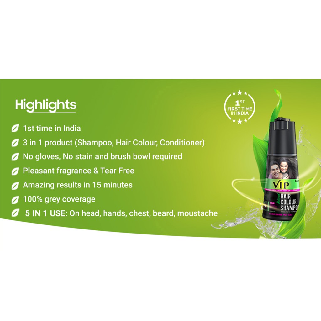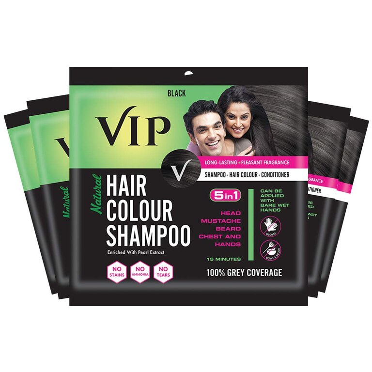 VIP Natural Hair Colour Shampoo 180ml - 5 in 1 Black, Brown (20ml sachet)