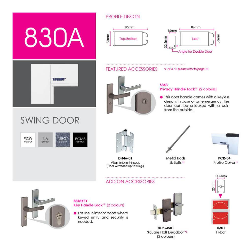 VITALLY - Swing Door Aluminum 830A Door Toilet Door Room ACP Plain Color Glass Door