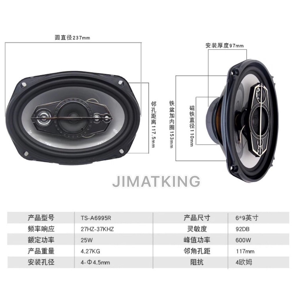 VOICE 6 inch 6x9 inch 4 Inch 4 way 5 way COAXIAL SPEAKER 1000W MAX CAR AUDIO BASS TWEETER WOOFER ORIGINAL
