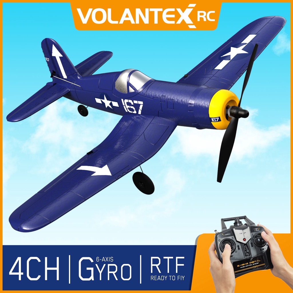 VOLANTEXRC RC Plane F4U Corsair 2.4Ghz 4CH 400mm Wingspan Fixed Wing EPP Foam One Key Aerobatic Airplane Remote Control For Beginner 761-8 RTF