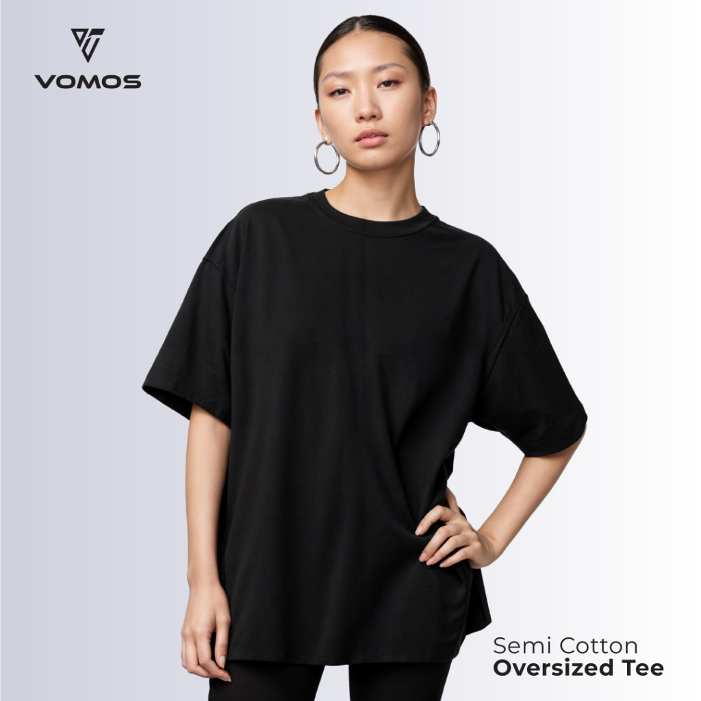 Vomos Overfit Semi Cotton Ironless Wanita Lengen Pendek Plain Oversized T shirt