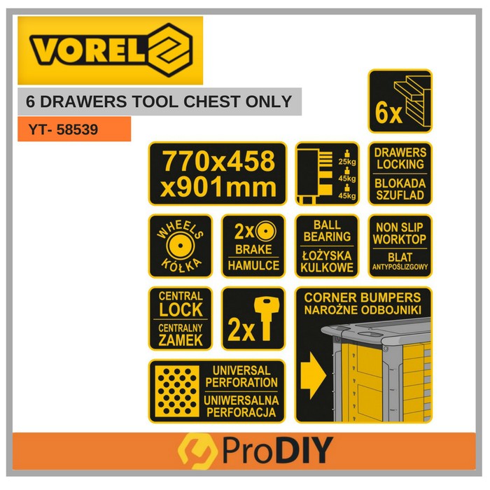 VOREL YT-58539 6 Drawer Tool Chest Only