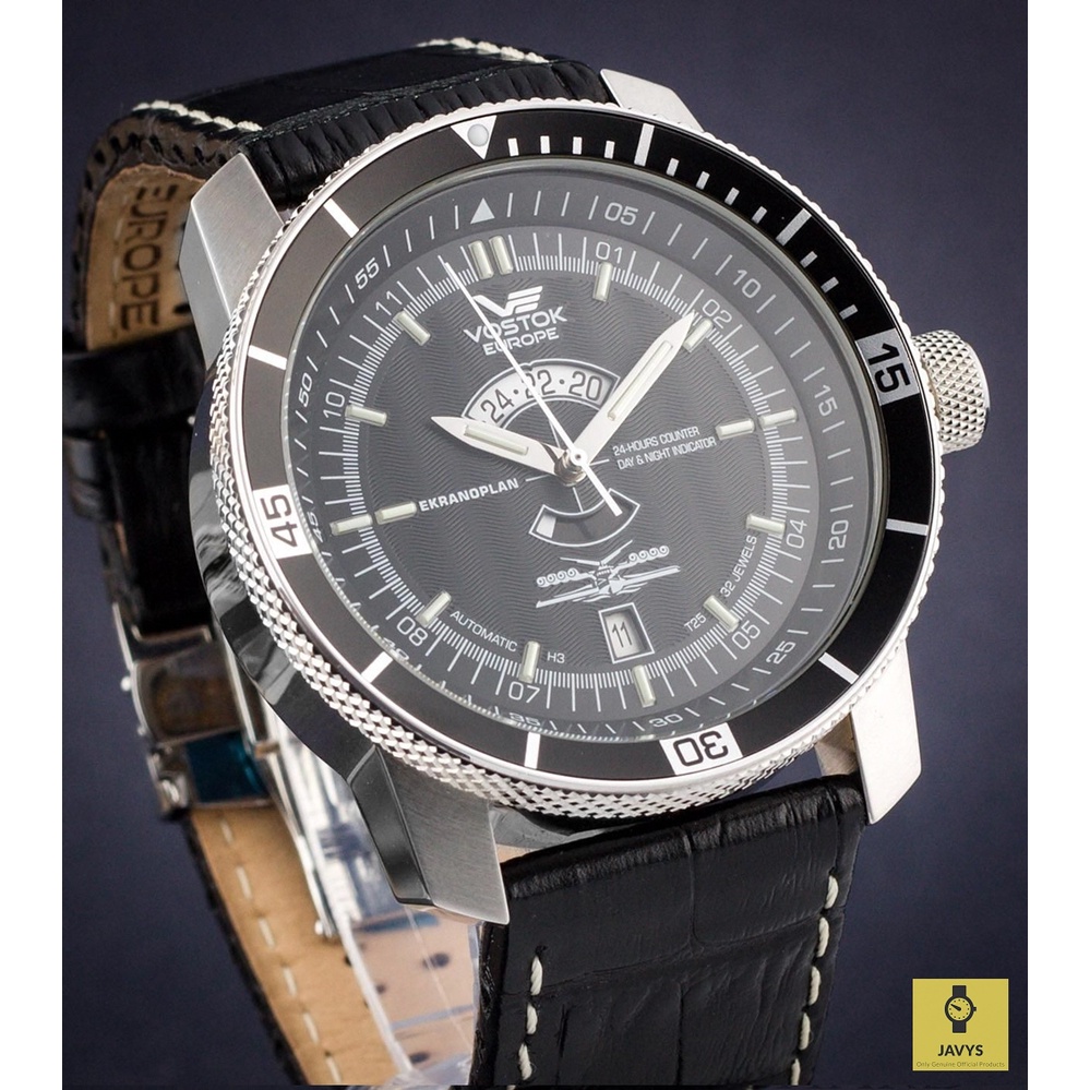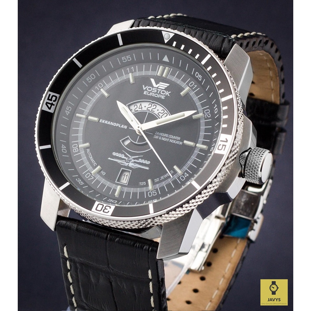 VOSTOK EUROPE 2432.01/5455157 / Men Watch / Ekranoplan / Automatic / Day Date / Leather Strap / Black / Clearance Sales