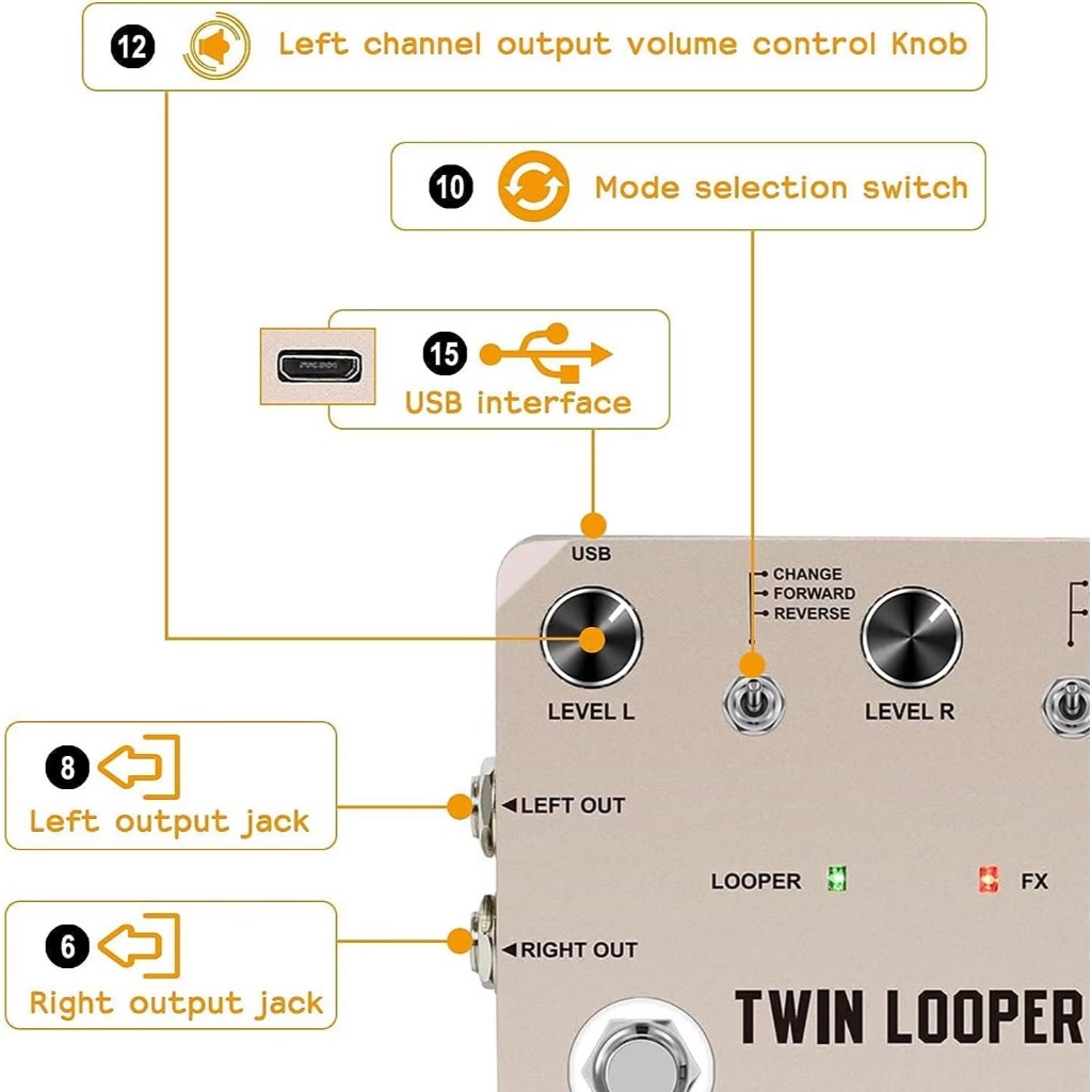VSN Twin Looper Electric Guitar Effect Pedal Loop Station Box 11 Types Play Modes Stereo Input/Output 10 Mins Recording Rowin