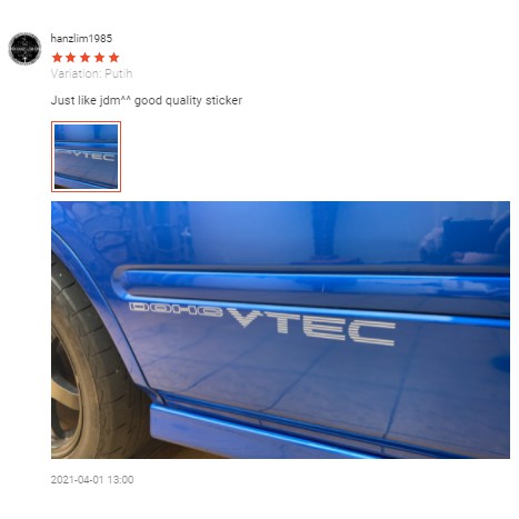VTEC DOHC Sticker Honda EG EK CIVIC EK9 MUGEN SPORT