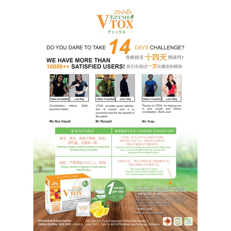 VTOX EZYME ( 2 Box x 28 Days ) DeTOX ENZIM SLIMMING (EXP : 01/2025 )