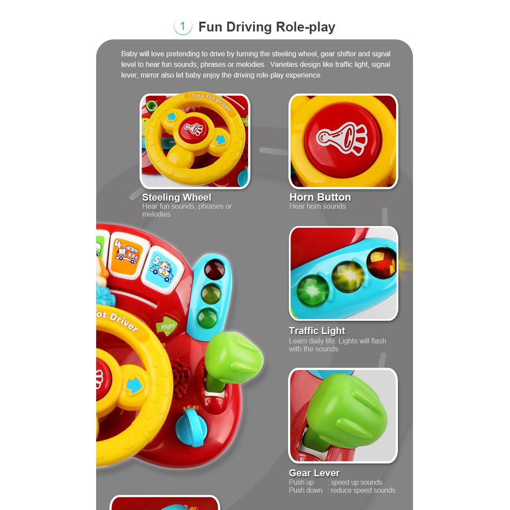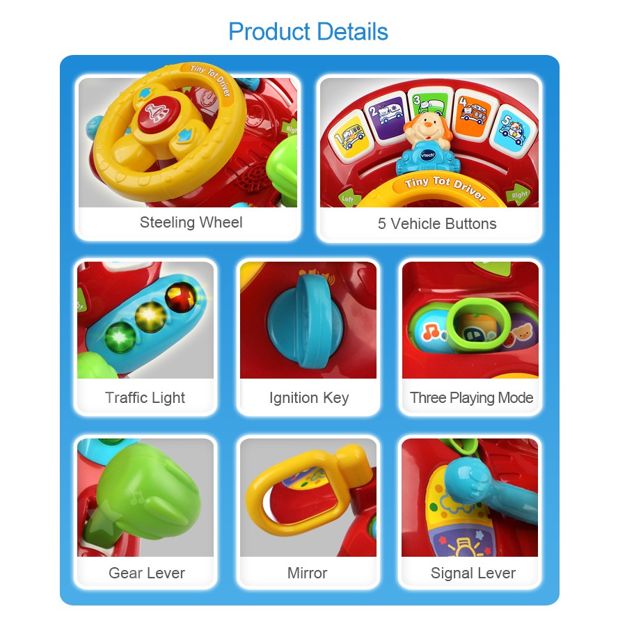 VTech Tiny Tot Driver Boys 1 Year Baby Driver Has Lights Music Early Learning Toys Kids Role Play