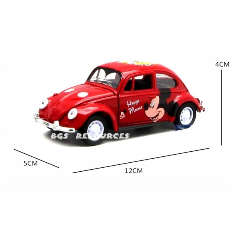 VW BETTLE CLASSIC ALLOY CAR MICKEY MOUSE CAR PULLBACK CAR 1:32 SCALE VOLKSWAGEN BETTLE DIECAST CAR