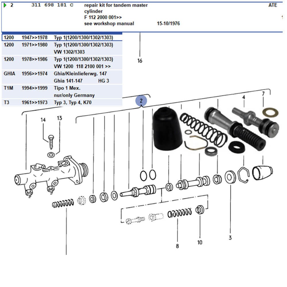 VW Brake Master Cylinder Repair Kit (Double Pin)