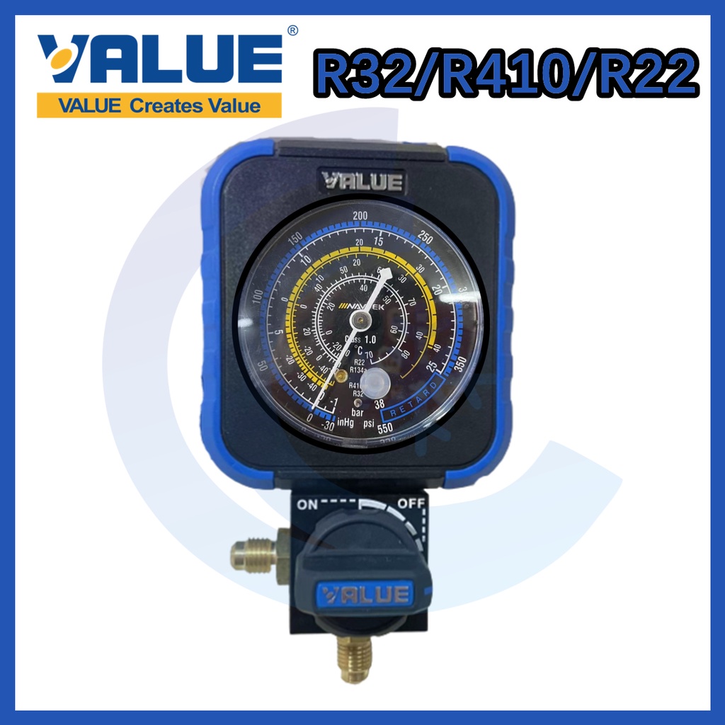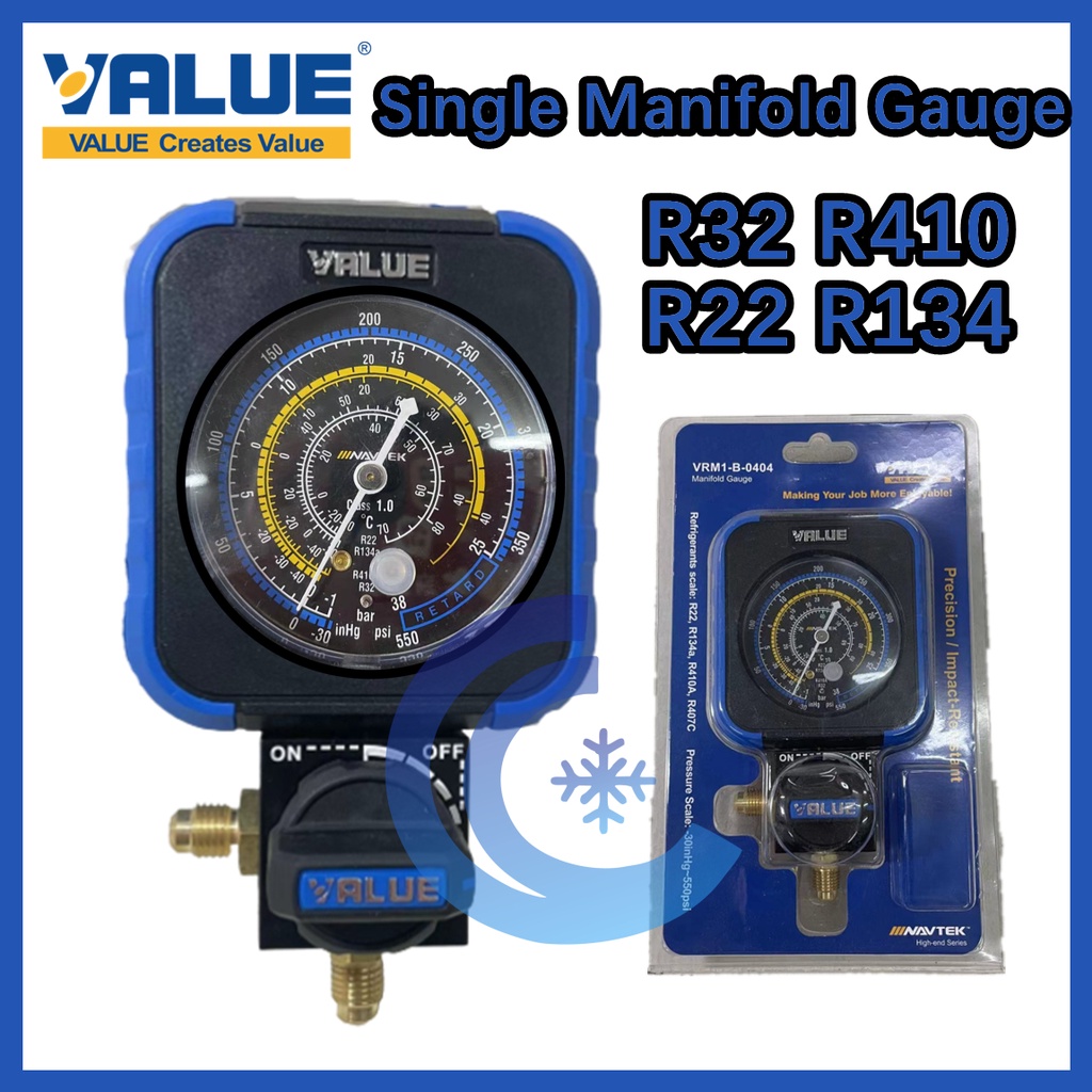 Value Single Manifold Gauge VRM1-B-0404 VRM1-B-0403 Gas Meter R22 R134 R32 R410A R407C YellowHat YH-SL-001