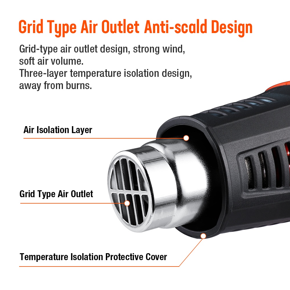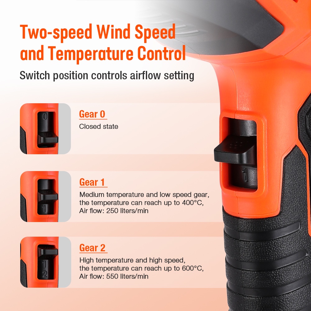 ValueMax 2000W Hot Air Gun Heat Gun Blower Shrink Gun Dual Temperature Control with 4 Nozzles