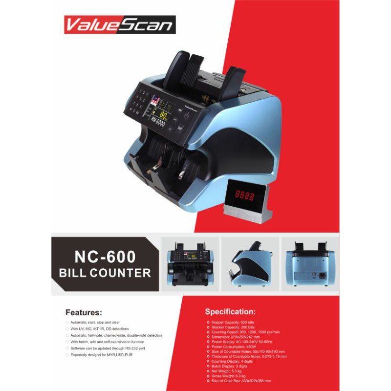 Valuescan NOTES COUNTER MACHINE ValueScan NC-600 Cash Money Bank Note Bill Counter Money Counting Machine