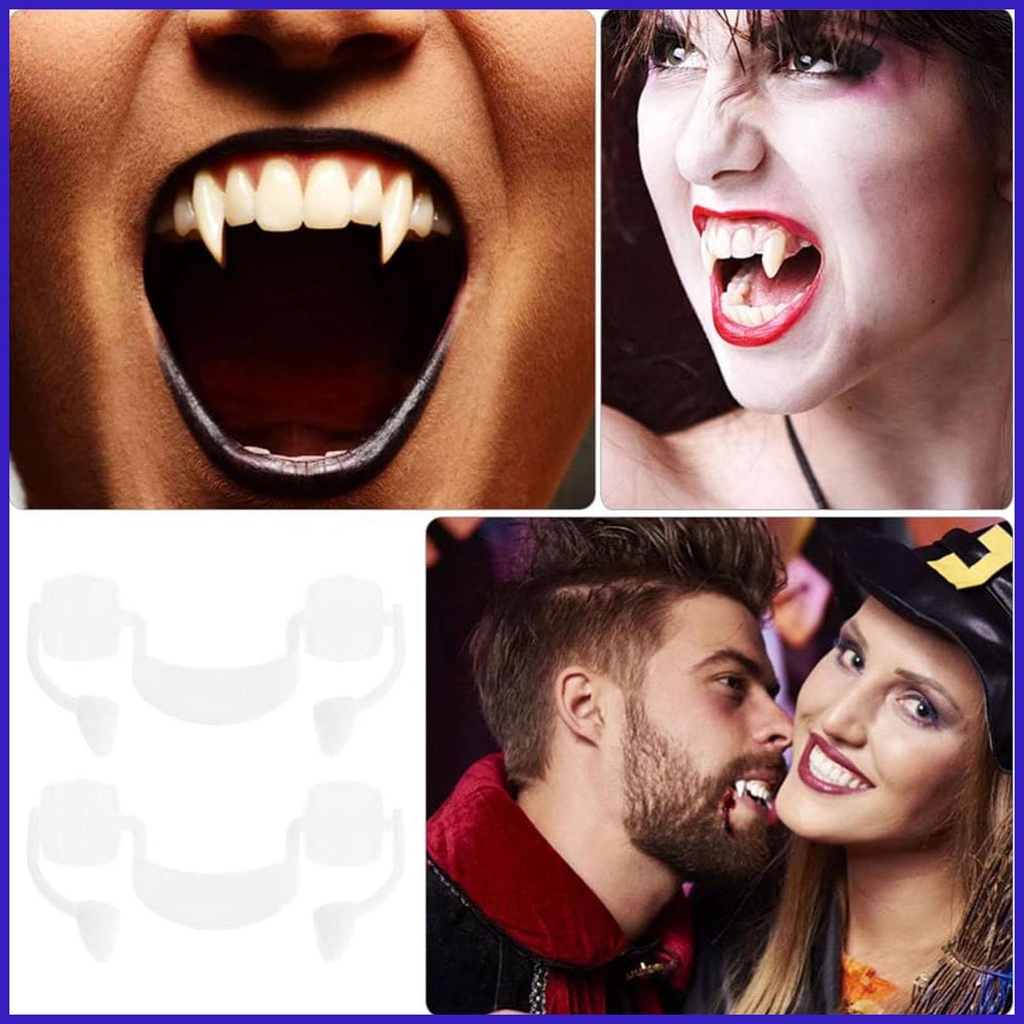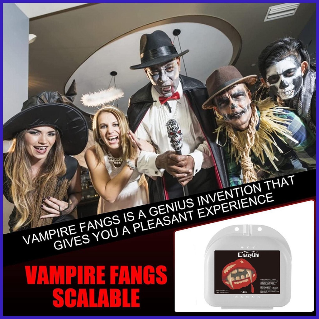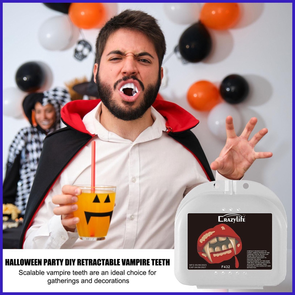 Vampire Teeth Realistic Retractable Halloween Teeth Scary Creepy Fake Vampire Fangs Teeth for Kids Adults Fake coelmy
