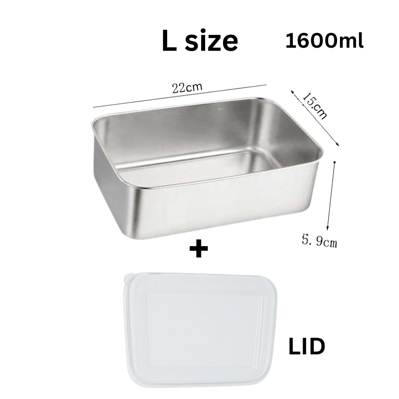 Stainless Steel Organizer Crisper Fresh-Keeping Storage Box with Lid Seal Freezer Food Container Bekas Simpan Makan