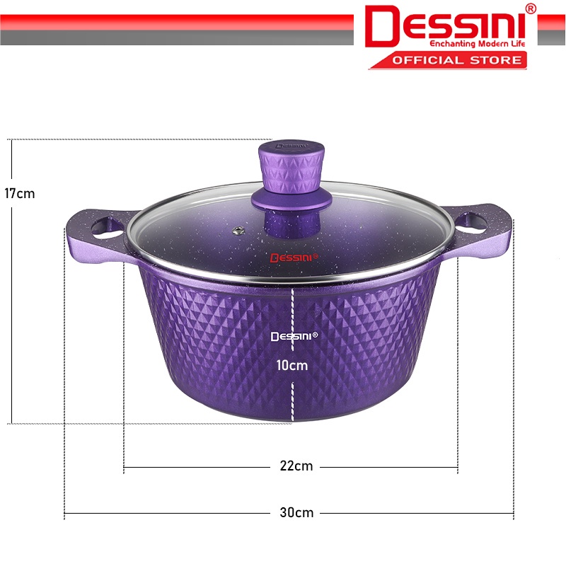 DESSINI ITALY 20CM Rhombus Casserole Die Cast Aluminium Non Stick Pot Bowl Pan Cookware Tool with Cover Periuk